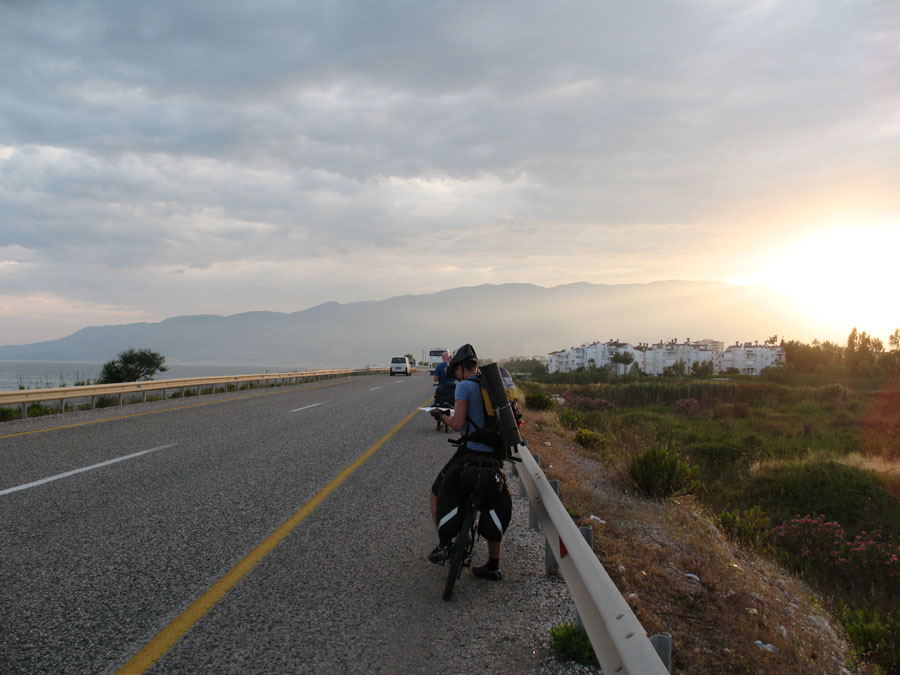 Включаем свет и катим по трассе в поисках ночлега. До Фетхие остается 23 км. Проезжаем деревню ….. и через километр съезжаем с трассы и находим укромное место под горой, вдали от чужих глаз, ставим палатки, едим и заваливаемся спать. Сегодня новый рекорд 72 километра за весь день.