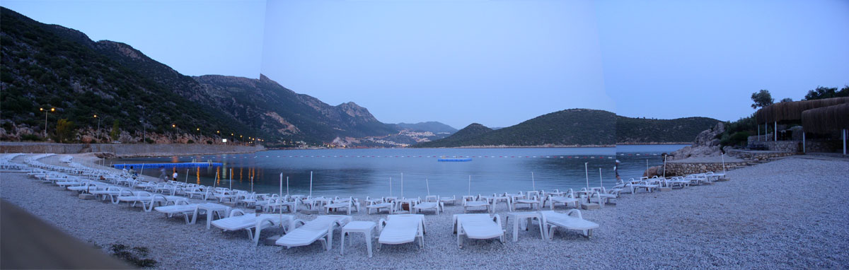 Seliff: Утром встали пораньше, в пол-седьмого, не жарко, отлично. Т.к. еду не готовили, собрались быстро, перекусили консервами и покатали в Каш, где нас ждал призовой подьём, а затем отличный затяжной спуск до самого Каша. Въехали в город, нашли супермаркет Migros. Здесь я хотел посетить Интернет-Салон, перелить фотки и отписать любимой. Надо купить тел.карту, газ, поменять деньги. К этому времени уже начало припекать, поэтому мы выдвинулись в сторону пляжа, немного поплутав, подкатили к вертолетной площадке, с которой с 3-х сторон, были спуски к морю. Недалеко в 30-ти метрах, было несколько деревьев, где мы разместились в тени. Отдыхая, загорая, купаясь, стираясь, в общем всячески пережидая жару провели время до 16.00, когда жара потихоньку начинает спадать. Попутно обсудили вероятный дальнейший маршрут. Было решено ехать до Фетхие, а оттуда, возможно, на автобусе ближе к Анталии. Заехали на автобусную станцию в Каше, узнали, что билет до Анталии стоит 16 лир, а с велами 32 лиры (хотя на счет велов можно будет торговаться , наверное). Затем закупились в супермаркете и покатили искать кемпинг, который по карте Сергея, должен был быть недалеко от города, проехав метров триста увидели вывеску и шлагбаум на въезде.
