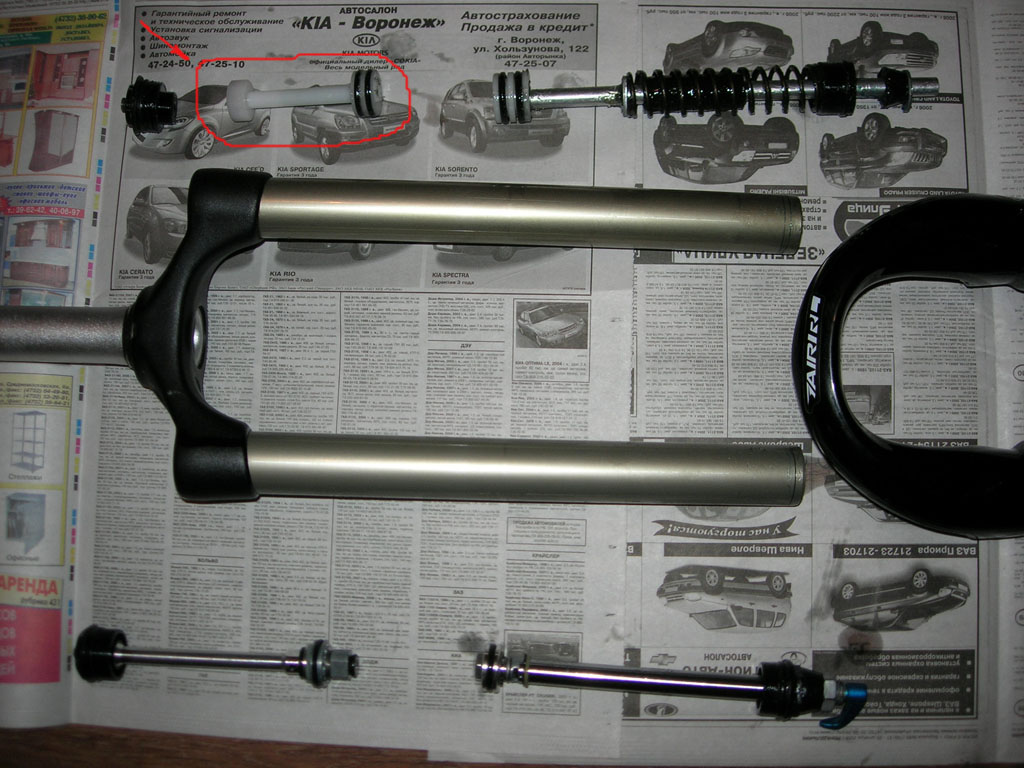 Сам вел собственно: Но не долго я радовался. Во-первых меня смущало то что вилка всего 80мм (в стоке стояла 100мм). Не то что бы это было критично но очень хотелось больше + больно она дубела на морозе, а вроде как дубеть то и нечему.