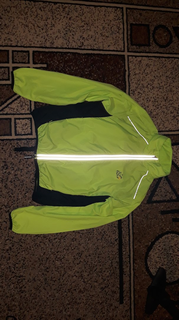 Ветровка велосипедная с али. Размер М. Светоотражающие элементы. Большой карман сзади на молнии. Капюшон, который можно спрятать в воротник-стойку и застегнуть молнией. Цена - 200 руб.