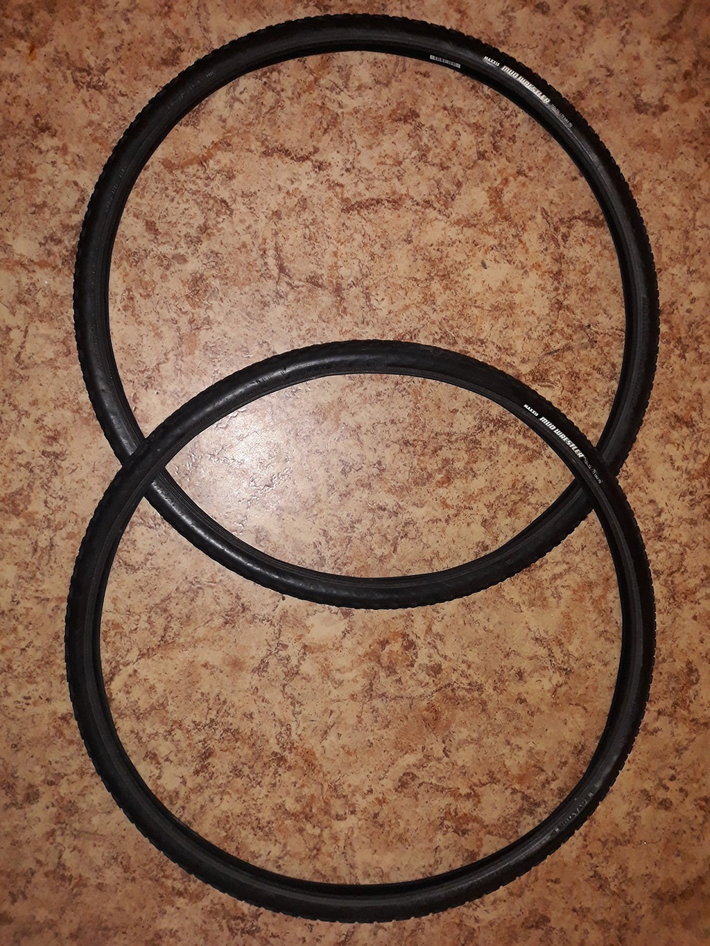 [ПРОДАНО]Kenda Kwick Trax 700x38c (http://sportresort.ru/product_info.php?products_id=5148). Полуслики. Состояние отличное - пробег около 1000 км. Очень устойчивы к проколам. Яркие светоотражающие полосы по всему диаметру покрышек. Катят как по асфальту, так и по грунтам. Идеальны для туринга. Цена за пару - 1500 руб.