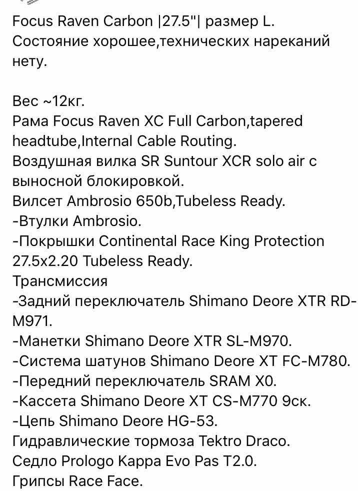 Re: Продам FOCUS RAVEN CARBON 27.5