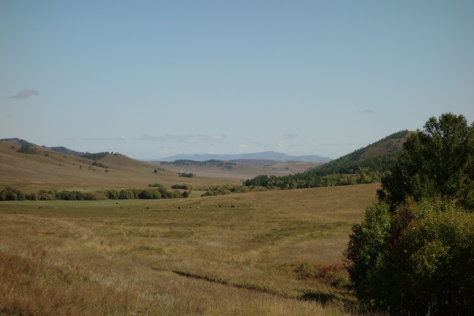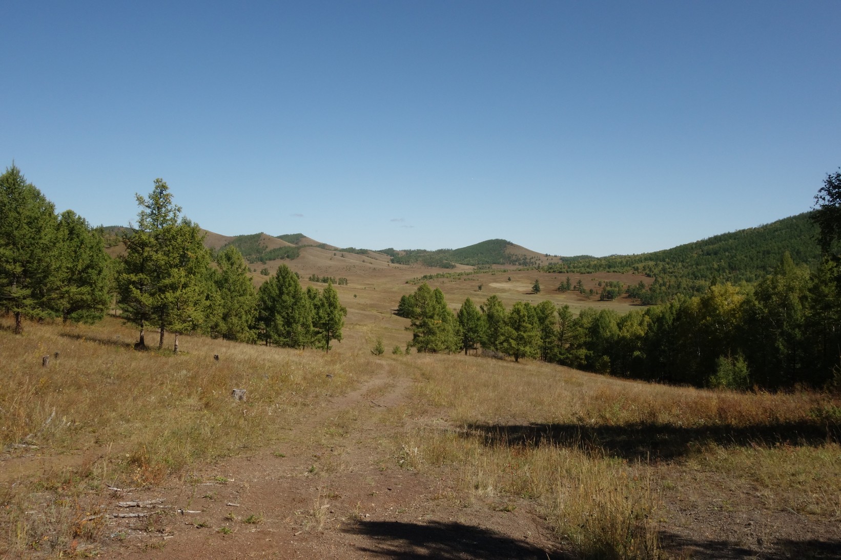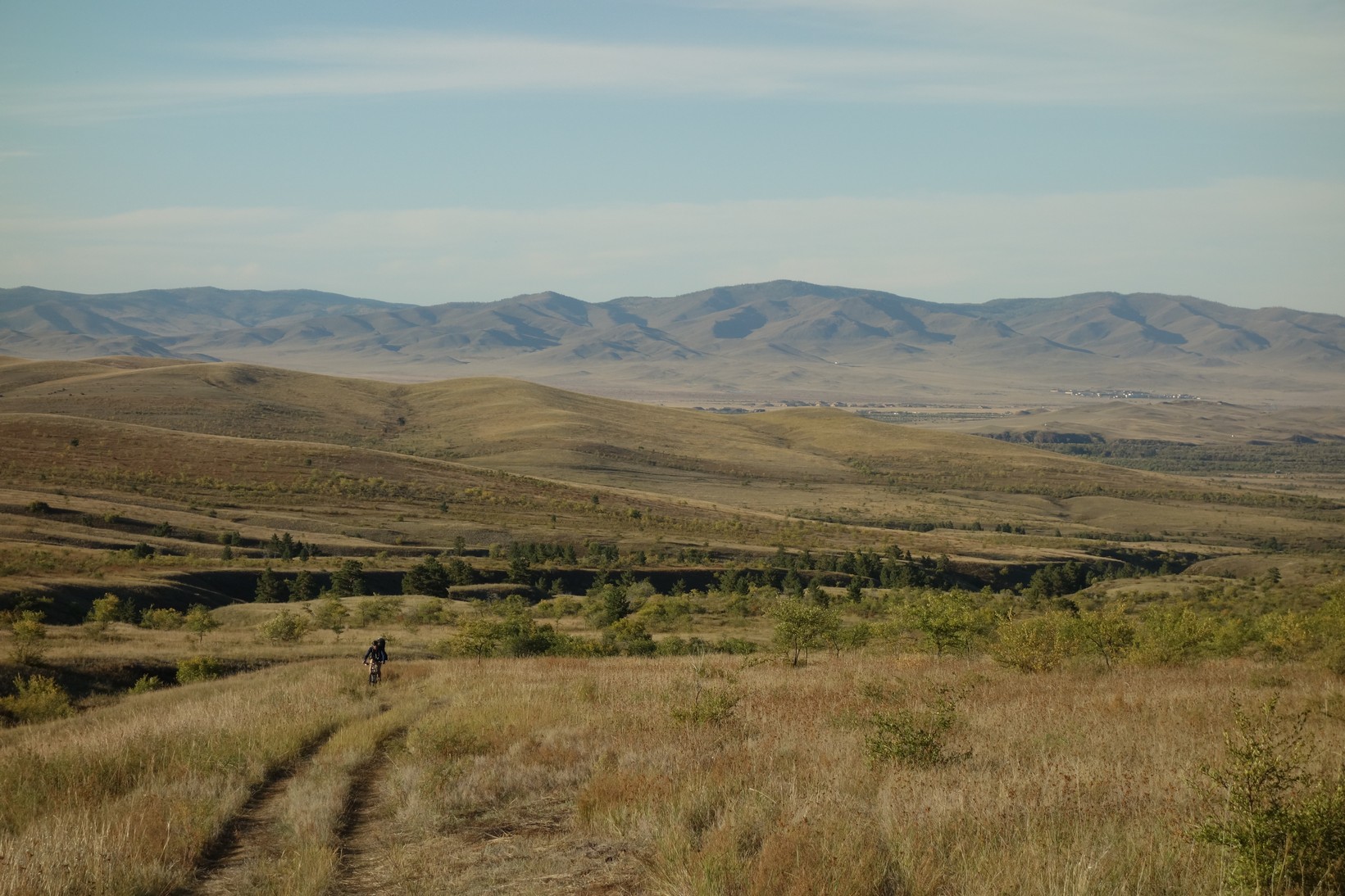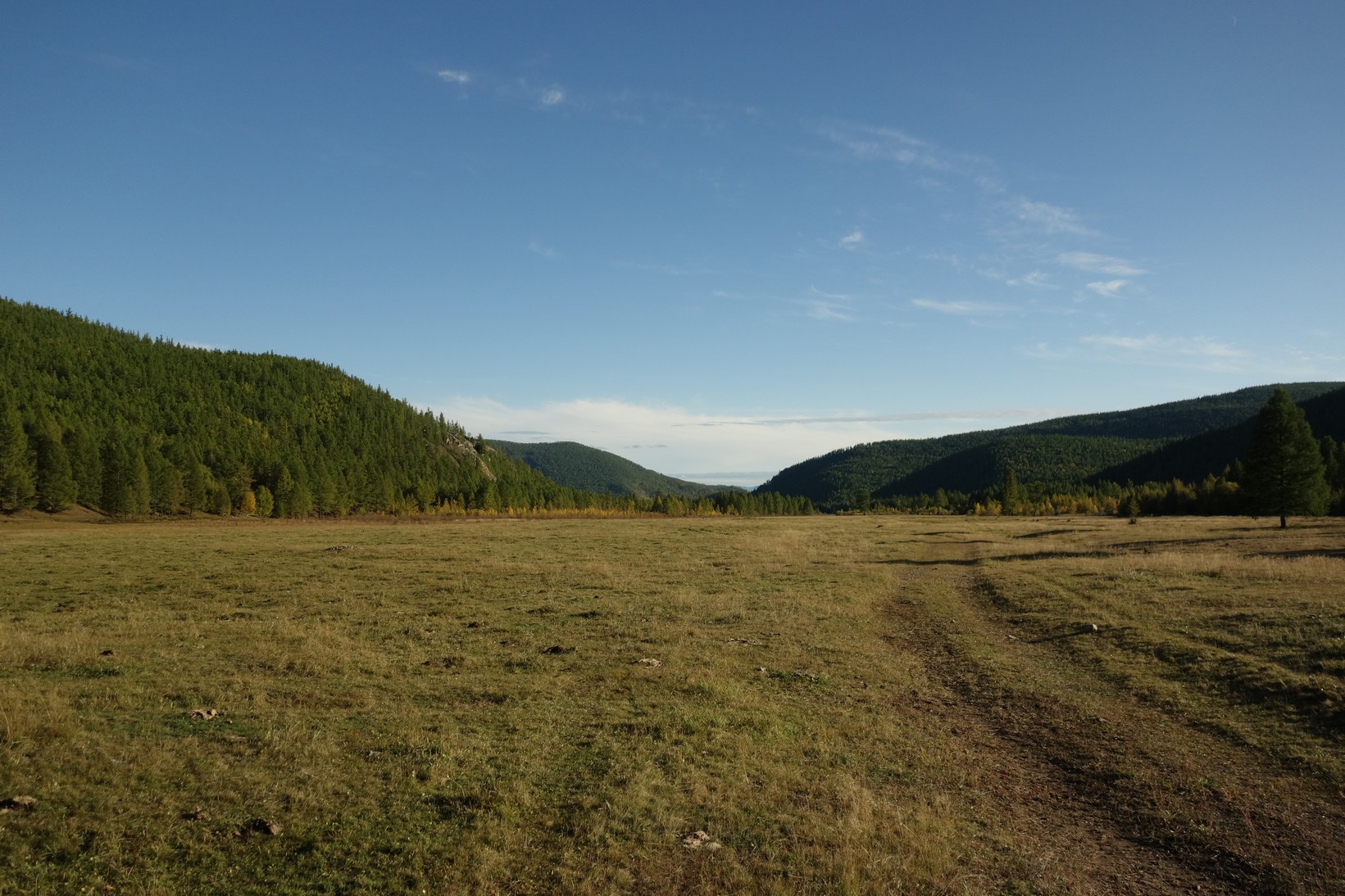 В общем, 6 дней мы шли пешком и тащили за собой велосипеды. Когда по щиколотку в воде, когда по колено. А закончилось всё довольно стремительно. На безымянном перевале через хребет Малый Хамар-Дабан, собственно, последнем значимом для нас перевале. И декорации сменили так внезапно, что я поначалу находился в околошоковом состоянии и с трудом воспринимал действительность. А действительность заключалась в дороге, бегущей вниз по долине через пастбищные луга и перелески. Иногда она забредала в сырые места, но зачастую там даже спешиваться не надо было, оно проезжалось или объезжалось. Ну и за оставшиеся 3-4 дня пути лисапеды полностью оправдали своё присутствие.