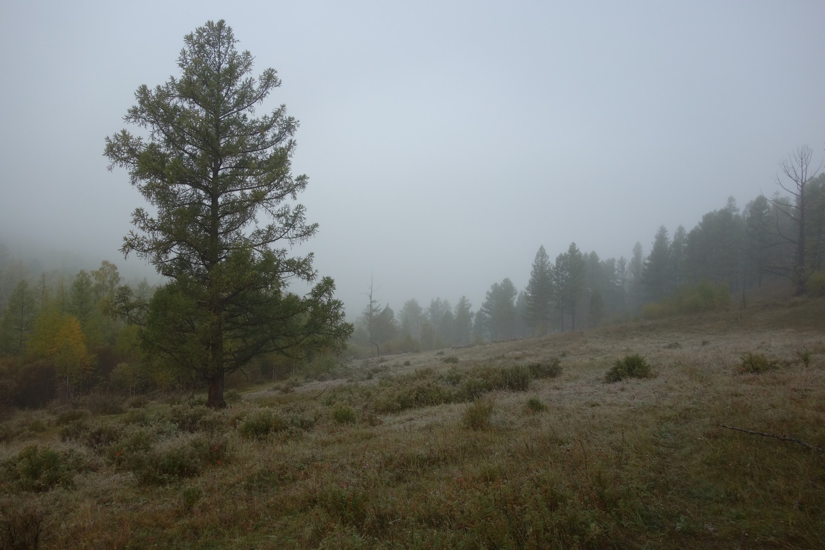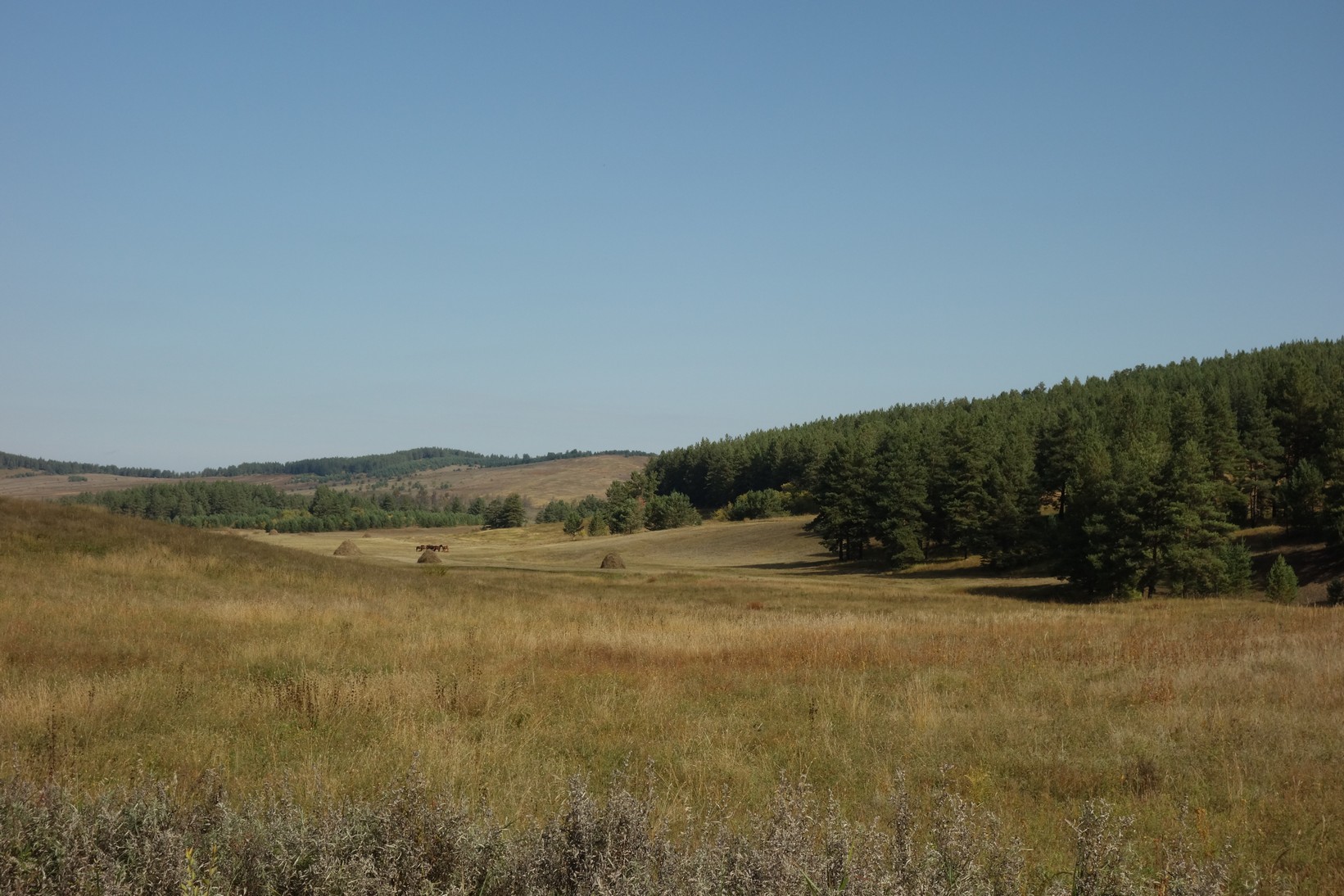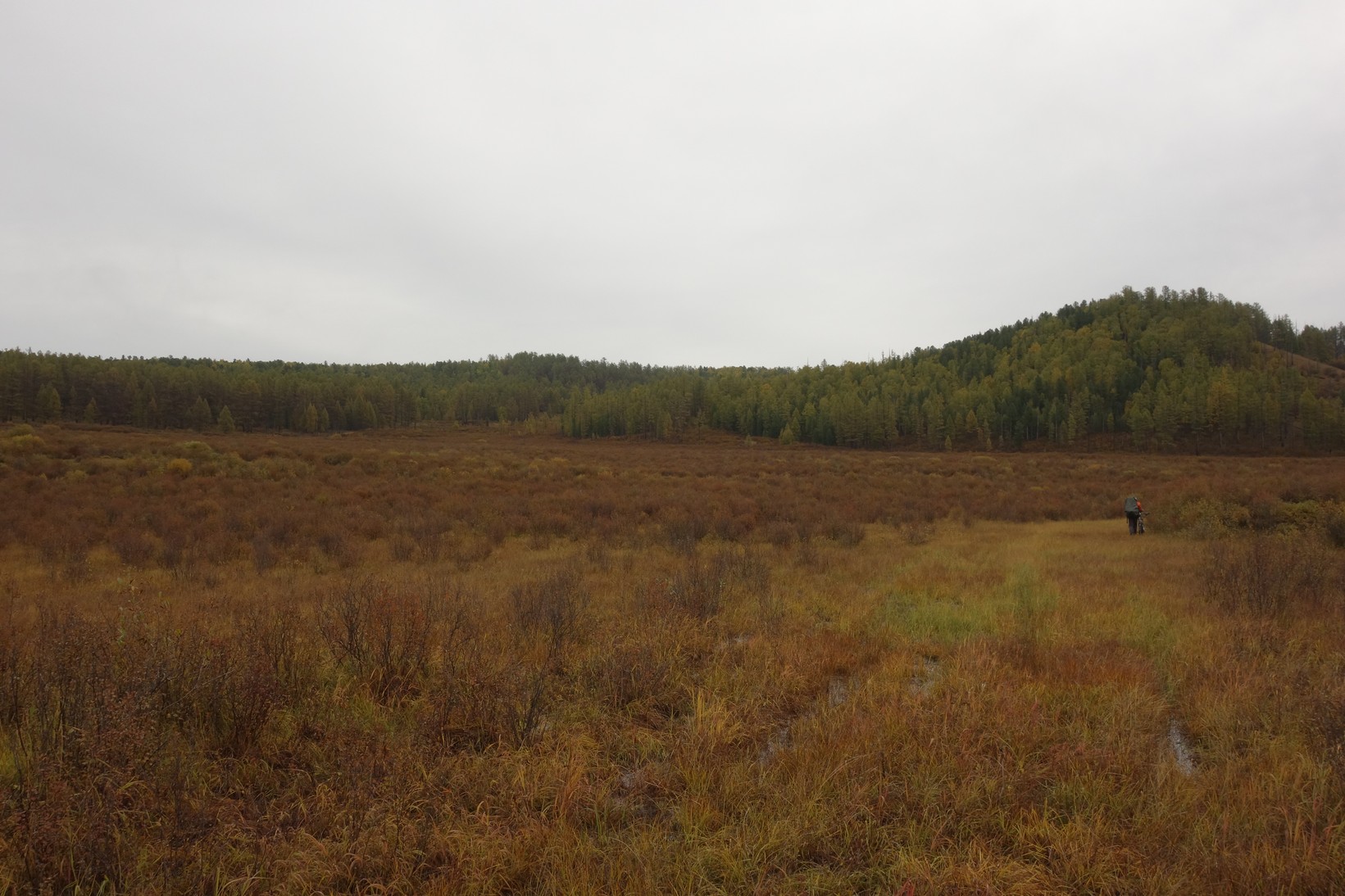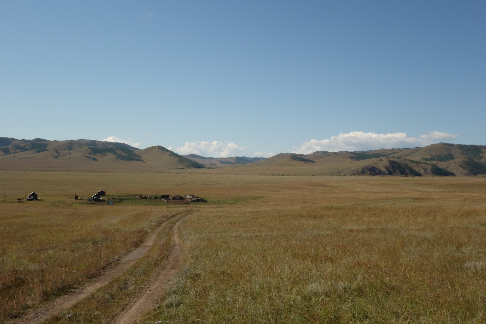 В общем, 6 дней мы шли пешком и тащили за собой велосипеды. Когда по щиколотку в воде, когда по колено. А закончилось всё довольно стремительно. На безымянном перевале через хребет Малый Хамар-Дабан, собственно, последнем значимом для нас перевале. И декорации сменили так внезапно, что я поначалу находился в околошоковом состоянии и с трудом воспринимал действительность. А действительность заключалась в дороге, бегущей вниз по долине через пастбищные луга и перелески. Иногда она забредала в сырые места, но зачастую там даже спешиваться не надо было, оно проезжалось или объезжалось. Ну и за оставшиеся 3-4 дня пути лисапеды полностью оправдали своё присутствие.