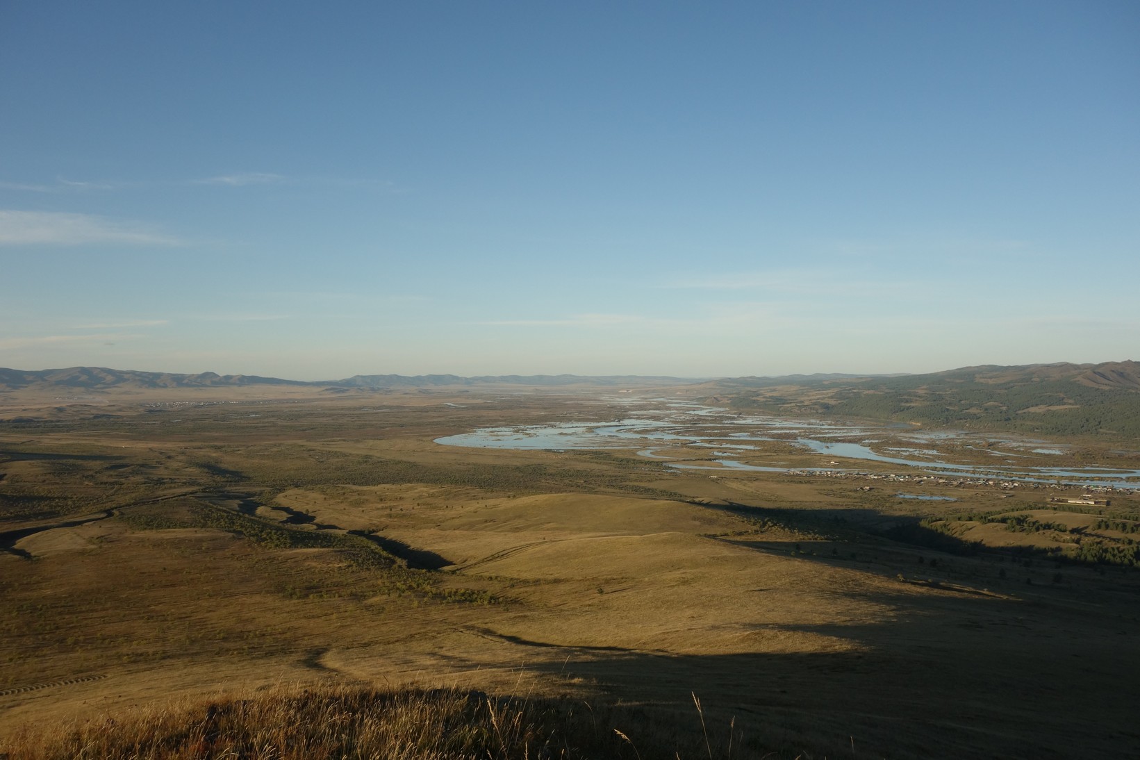 Разлив Селенги с вершины Хараты. Разлив эпичный. Мы ехали 10 км по железной дороге (по шпалам), ибо больше никак. Если бы нас не пустили на жд мост, пришлось бы ждать поезда и переезжать реку на нём.