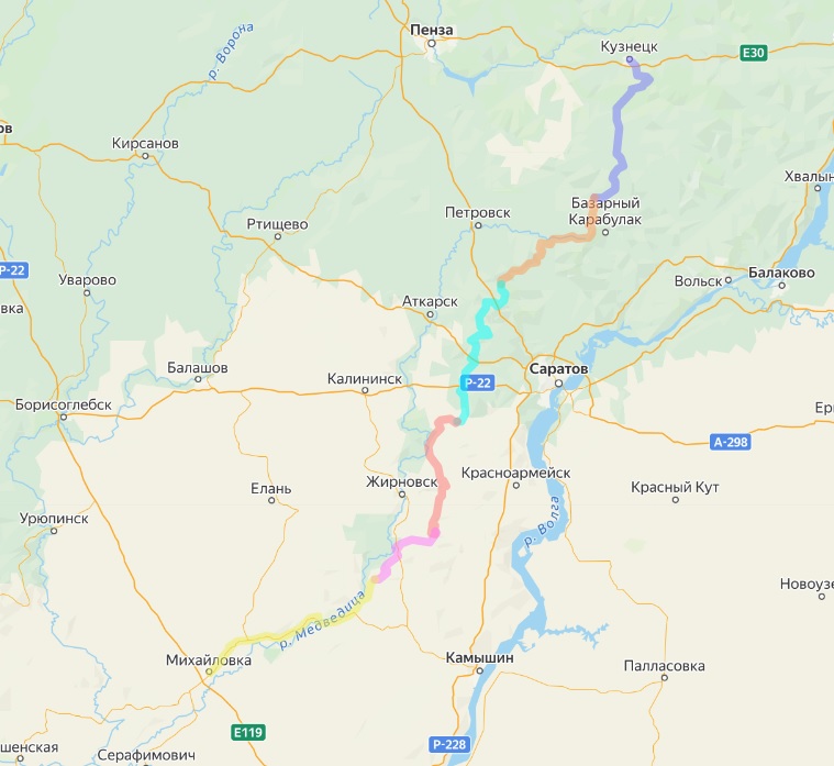4. Ну и потом в виде логического продолжения слиться по течению Медведицы к устью, а точнее к пересечению с жд веткой на Волгоград