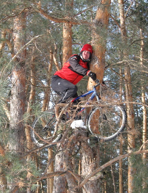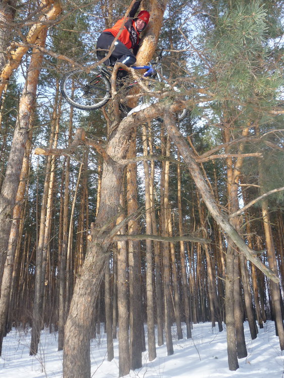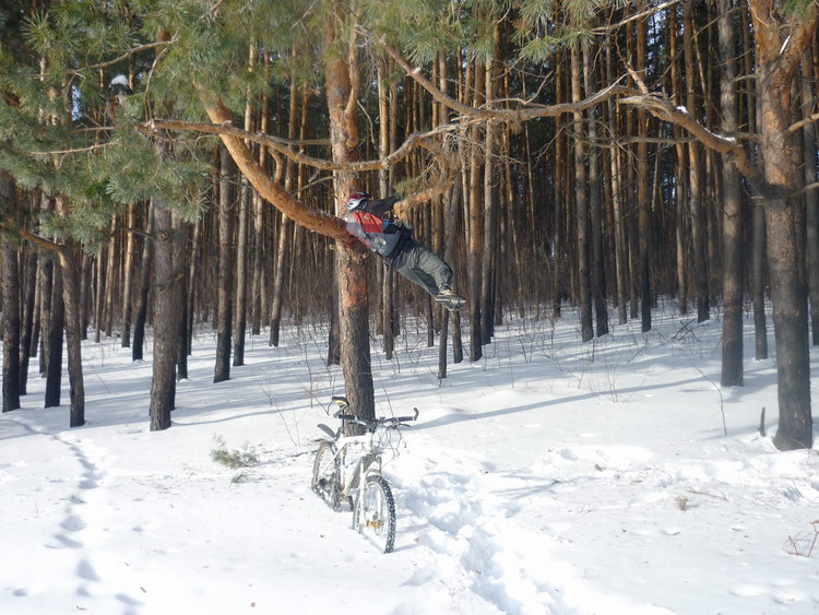 Целились в Чистое озеро, стрельнули и с хорошей инженерной точностью попали в Рыкань. Повторили прошлогодний маршрут см. "Битва при Рыкани", но в снегах не тонули, потому что велосипедист - это сложное, обучаемое крутильное устройство. Оно обучилось, чтобы в снегу не тонуть, да и не тонуло. Правда, даже у продвинутых моделей думатель дает сбои. Поэтому иногда можно увидеть велосипедиста, допустим, на дереве. Можно даже увидеть на дереве двух велосипедистов. Но думатель - это расходник, вытащил, заменил или прочистил - и ехай дальше. Некоторые неприспособленные для зимы модели сегодня приложились думателем об дорогу. Несомненно, дефект со временем обязательно будет устранен. Вопщем, велосипедист - это неприхотливое устройство с дружелюбным интерфейсом. Надо только вовремя пихать в него печеньице и скалывать замерзшие сопли. А так он даже очень свободно может ехать без половины седла, как продвинутая модель Неджмдин Бенсеид. Ку ку, товарищи, ку ку.