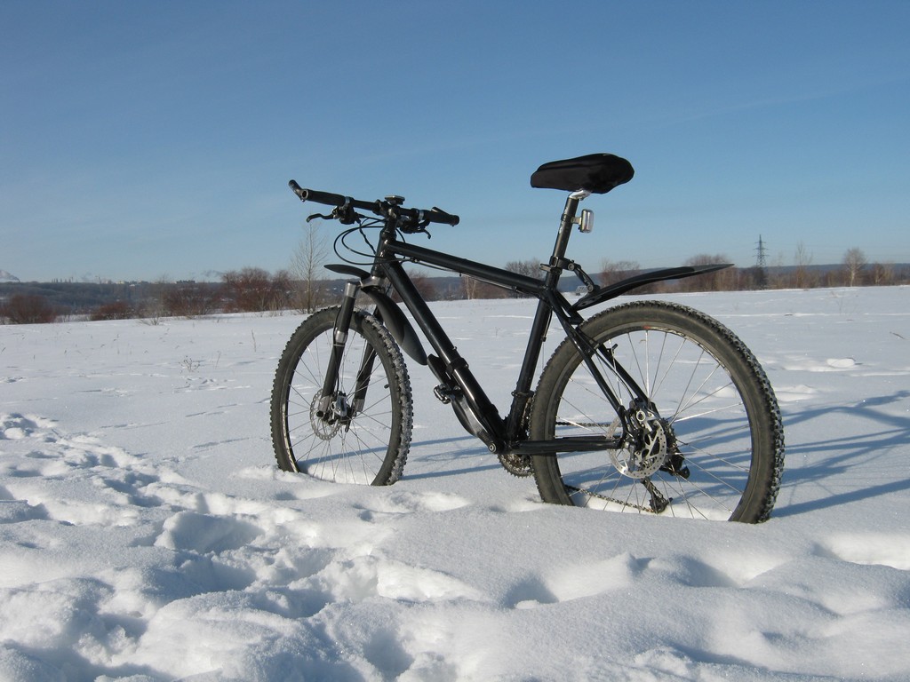 Итак, байк был, наконец, собран, и я сразу же помчался на свежепостроенную трассу, обкатывать его. Хотел проверить, как будет проходиться трасса на байке с подобной рамой. Помню, мороз был где-то -15-17, но желание опробовать новый байк на трассе пересилило все.