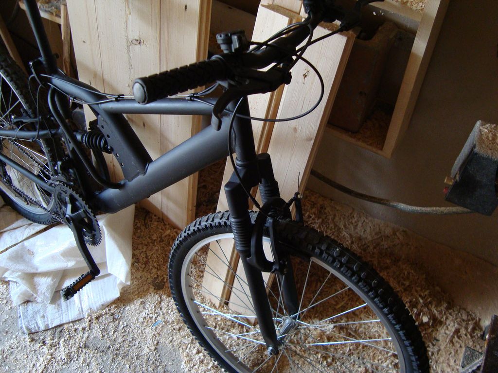 Покрасить колеса, седушку, цепь и наклейку бэтмен на раму