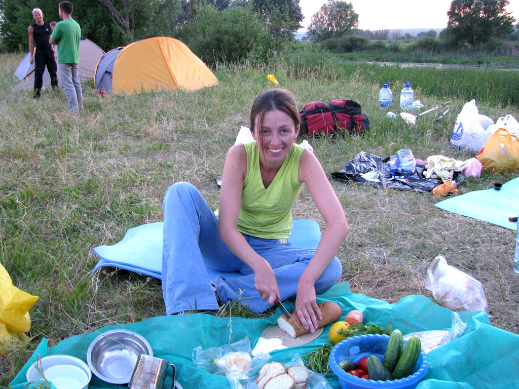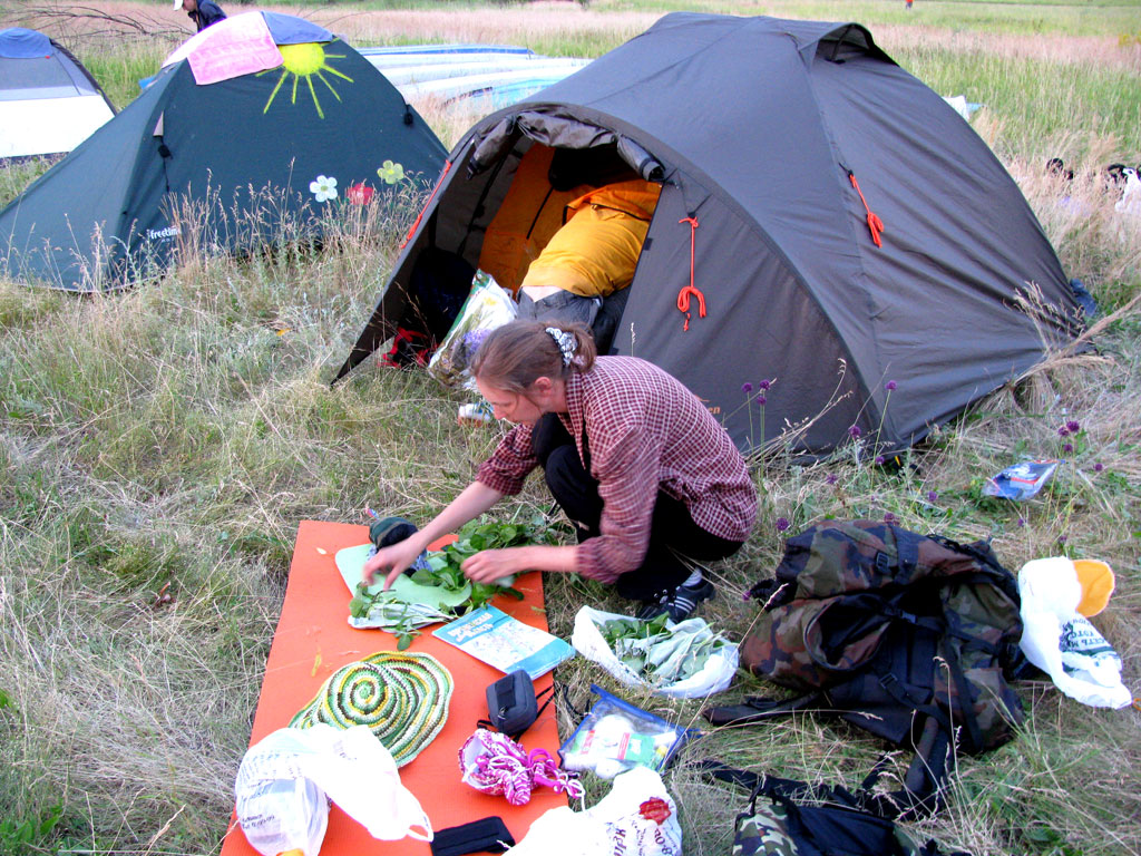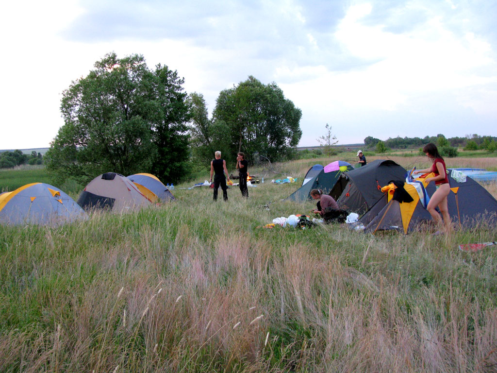 Для первой ночи природа подготовила живописную поляну на котором солнечное настроение живет всегда, радостная расса байдарочников ни на секунду не остановилась у преграждающей 5 метровой отвесной скалы на которую нужно было залезть с байдарками, и на поляне зародилась жизнь, выросли шатры и палаты, появились гусляры и баянисты, которые не заставили себя долго ждать...