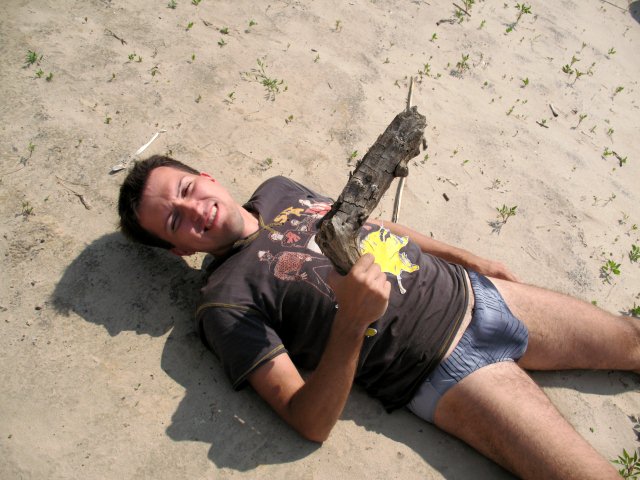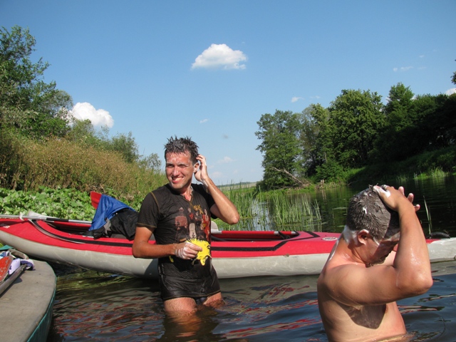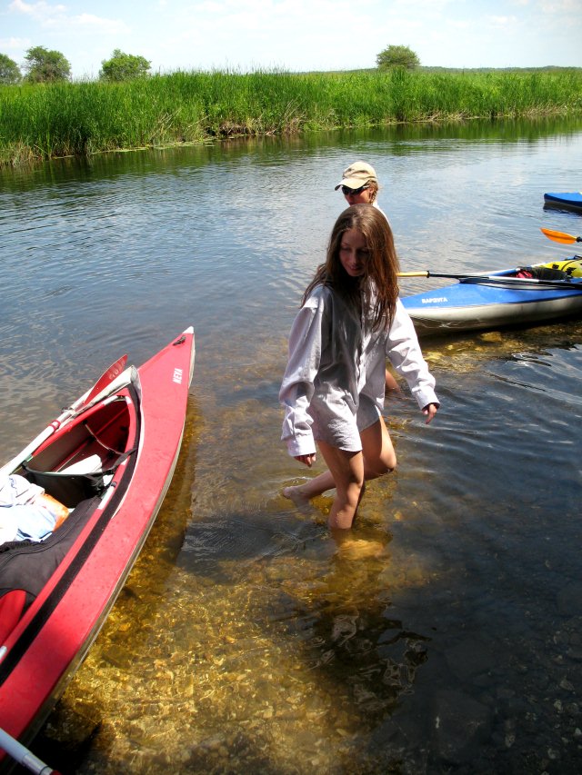 Для создания наибольшего антуража все 6 разобранных байдарок с их пассажирами высыпало на местный пляж, с банальными для такого места необъятными тетками и их орущими детьми вдетыми в спасательные круги.