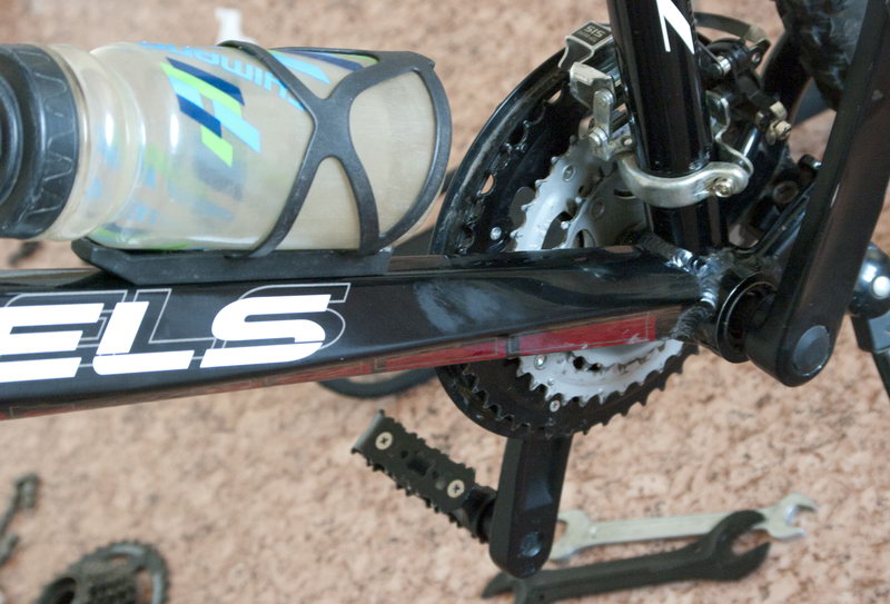 Возраст - 2 года. Состояние - технически отличное, за зиму полностью перебран, смазан и настроен. Колёса без восьмёрок - прыгал макимум с бордюров, без экстрима. Рама без трещин, есть мелкие коцки, перо побито цепью (довольно долго ездил без защиты). У кареточного узла есть странные потёртости (лак облазит?). Есть потёртости на манетках. На работоспособность не влияет.