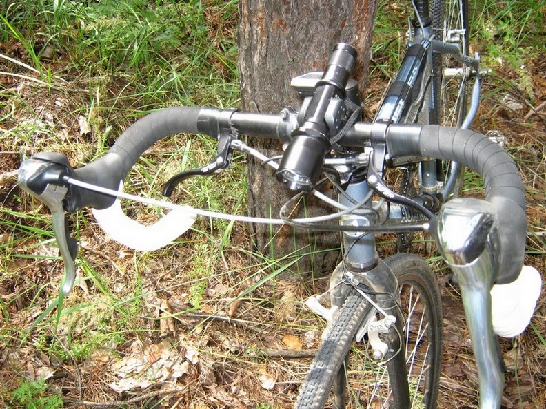 руль - хз, циклокроссовый с дублирующими тормозными ручками и модной черно-белой мягкой обмоткой;