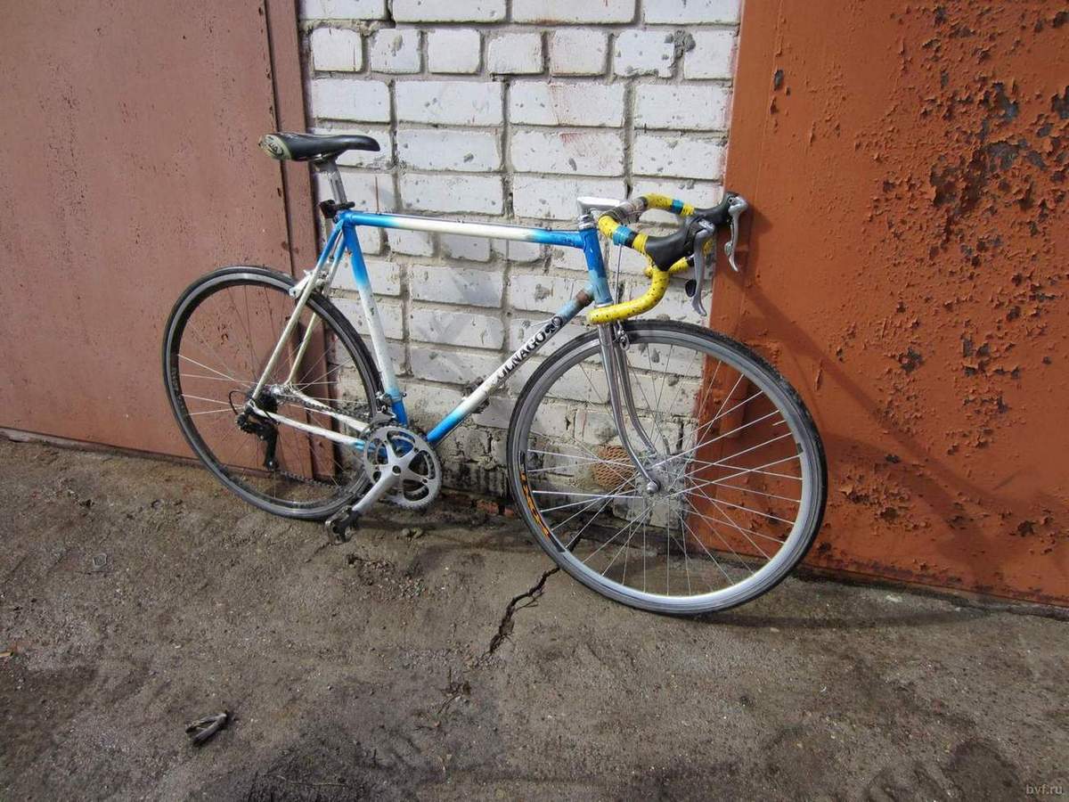 Рама ХВЗ (предыдущий хозяин говорил спецзаказ), остальное модное всё вроди (двойные спортивные обода; клинчера; тормоза задние- компагноло; седло- селе италия; вилка, руль, вынос, подседел- тож какие-то (то ли итальянские, то ли японские)). В общем не помню всего конфига. С прошлого года пылится в гараже. Помню был достаточно быстр и накатист.