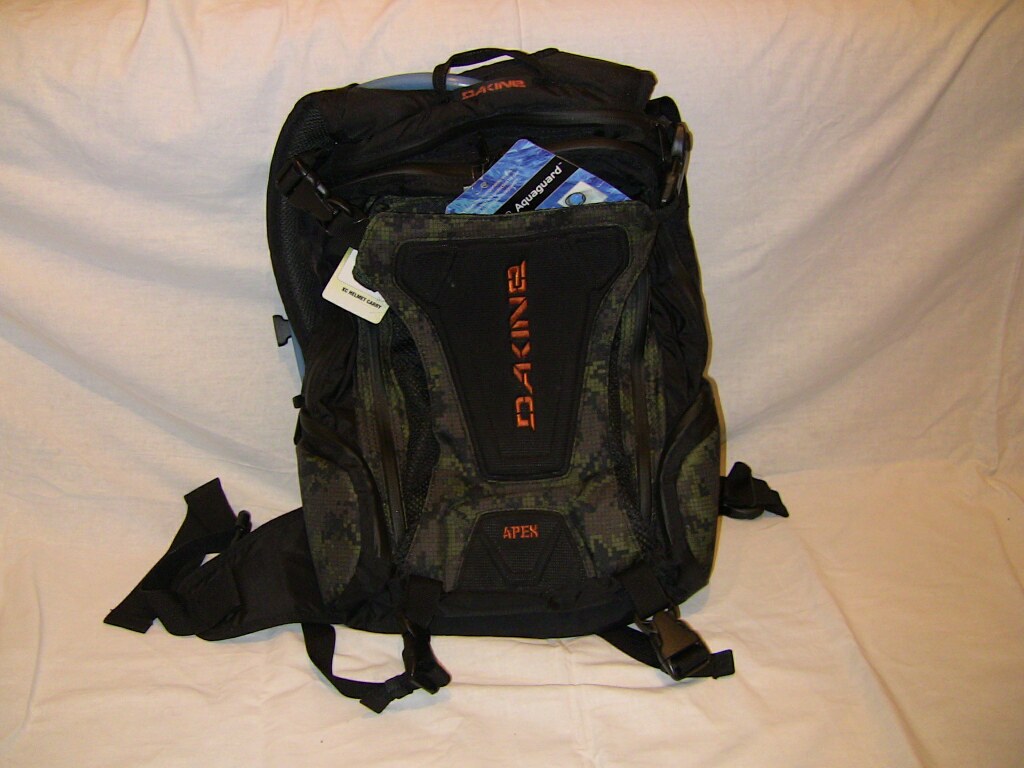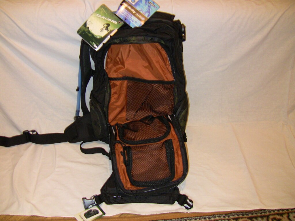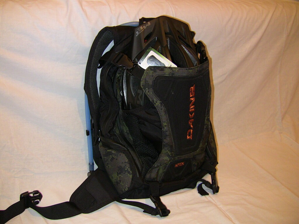 Dakine априори скейт/сноуборд - бренд. И Ваш рюкзак больше смахивает на сноубрд-девайс нежели на что-то другое. Широкие разгруз-ремень и нижняя зона обхвата спины, то что вы посчитали за карман шлема скорее всего место под лавнную лопату, вместе эти две конструктивные особенности уменьшают шансы повреждения спины при падении и ударах об жёсткий склон и камни и если в нём поковырятся то можно неверняка найти довольно много интересных примочек . Для велорюкзаков характерны: НЕ широкие разкгруз - пояса; спинка-сеточка (для лучшей вентиляции), каркас обеспечивающий вентиляционный зазор между спинкой-сеточкой лежащей на спине велосипедиста и собсна мешком рюкзака. Вообще рюкзак кайф, но не велосипедный стопудоффф.