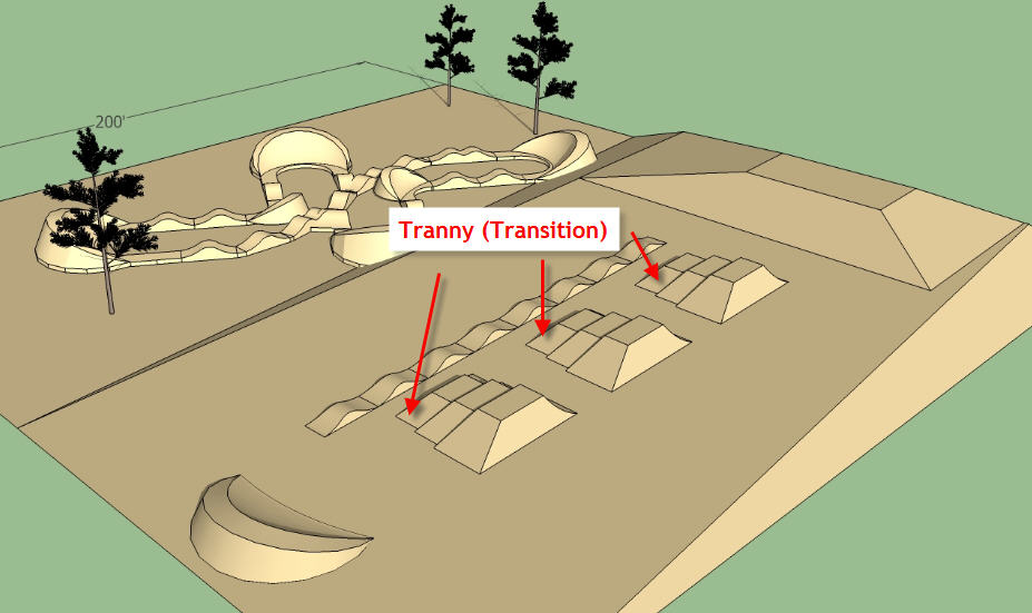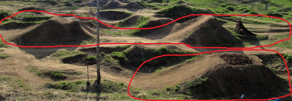Намечаю - разгонку 4 метра высотой, около 3х дёртов достаточно больших со столами, памп трек с большими кочками и прыгательной секцией(дальше он будет расти, но уже за счёт лопаток).