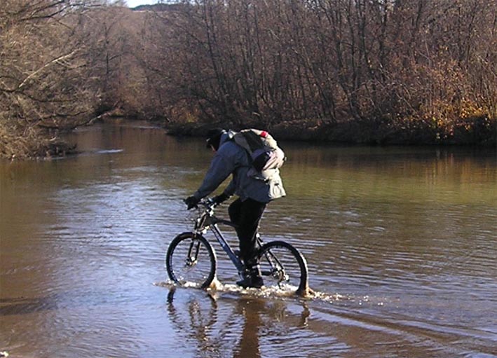Поездка длиной 105 км. Произошла по маршруту: цирк (что символично), курский мост, Подпольное, психушка в Орловке (что символично), карьеры в Стрелице, вдоль Девицы до Хохольского, асфальтом до острогожской трассы, грунтами до шиловского понтона, грунтами до плотины вдоль р.Воронеж, вдоль воды по левому берегу водохранилища до города. Участвовали: 460, Mazay,PingWin, Radler, seliff, Zheny и я. Mazay и PingWin доехали только до курского моста. Первое длительное любование пейзажами произошло на карьере. С киданием камней в замерзший водяной ем. С наблюдением за работой шагающего экскаватора. Потом немного поездили по дну реки Девицы. И довольно быстро добрались до Хохольского. Успели во - время. Там как раз ограбили то ли магазин, то ли покупателя, я так и не понял. Милиция все время крутилась вокруг нас и задавала вопросы с подковыкой. Потом переписали мои данные, очевидно потому что я имел самый бандитский вид, и отстали. Под памятником трактору мы лихорадочно подкреплялись, памятуя прошлогодний заезд и нудно - тяжелый 15 км.асфальтовый кусок до острогожской трассы. Но тогда был ветер в лицо, а теперь в спину. Мы этого куска и не заметили, за исключением подъема от р. Еманча. С погодой повезло. Солнце, грунты укатаны до состояния асфальта. Знакомым маршрутом доехали от понтона до плотины вдоль Воронежа. После плотины seliff поехал в город асфальтом, и правильно. Последний кусок вдоль берега водохранилища без амо вилки проехать было бы очень тяжко. Этот этап еще более разнообразил и без того разнообразный маршрут. Правда, пришлось ехать по темноте последние пол-часа. Спасибо за отличную компанию.