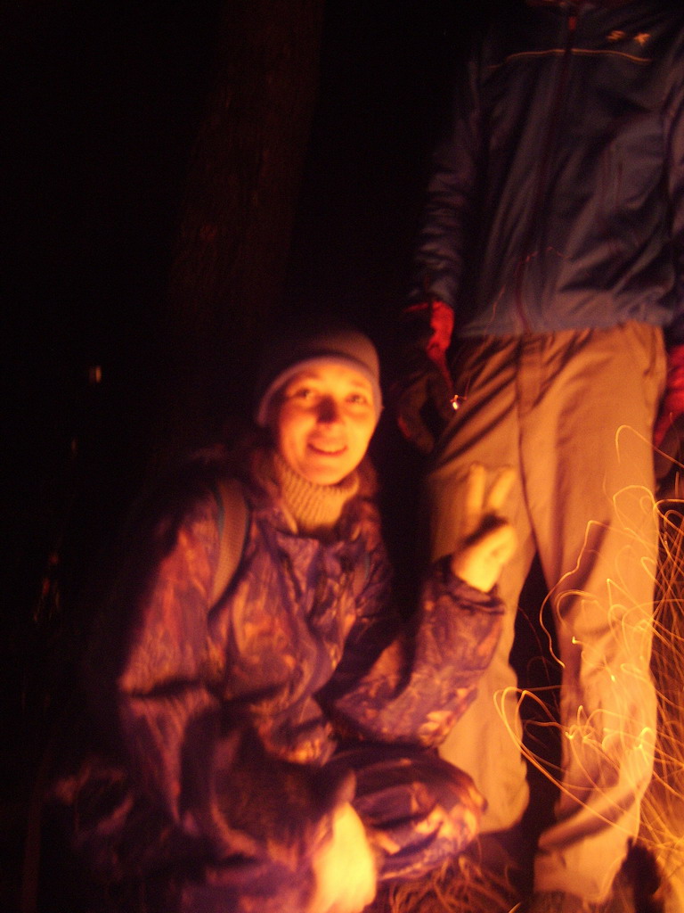 Одевайтесь по погоде, учитывая ночь, зиму и лес..)))