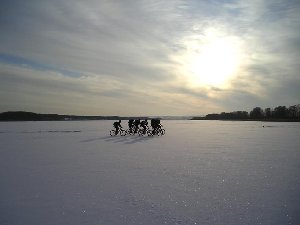 Ехать надо от Цирка в 10-00. Желательно на шипах. Думаю, включим в маршрут куски по льду Жирово, Сонькиного, Кременчуга , Икосного, Мыльного озер. Может и до Погоново сподобимся. Зимой автомобиль становится другом велосипедиста , ведь он прокладывает колею. Надеюсь, леса уже испещрены колеями, пригодными для изматывающего отдыха.