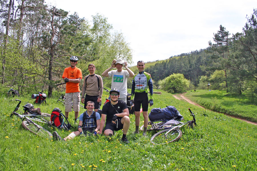 Между тем, к третьему дню нашего путишествия стали открываться неожиданные вещи… Во-первых, оказалось, что в команде подобралась форменная гопота :) которая превращается в приличных молодых людей только садясь за руль велосипеда! Вы мне не верите? Ну… уж не говоря что очень быстро общение в группе состояло из фраз: "-- Слыш чё, есть чё?!", "-- Чё такой борзый?!" и "-- Скока скоростей? Дай покататься!" так и поведение оставляло желать лучшего и вскоре я вам докажу это наглядно, с помощью фотоматериалов! Во-вторых, и не в последнюю очередь, в нашей группе обнаружилось устойчивое поклонение древнему зловредному божеству. Божество и в самом дело недоброе, от него бывает побаливает живот, появляется отдышка и ухудшается сон. Главным же проповедником божка стал никто иной как лидер команды -- Дима, о чем свидетельствовала его темная инквизиторская шапочка. Надевал он ее и начинал тут же призывать всех к молитве, со словами: "-- Давайте жрать!". Мы конечно сопротивлялись в начале, Семен причитал: "-- Я хотел похудеть в этой поездке!" но силы были не равны. Бог Хавчика опутывал нас своими сладостными объятиями из гречки с тушенкой, овсяных печеников, шоколадок Рошен, и банками с сайрой… Очень быстро самые слабые из нашей команды попали под влияние культа и требовали новых даров богу Хавчика. В жертву шли кефир и молоко, соки, сгущенное молоко, колбасы и сыры -- все то чем можно было бы накормить пол Судака жадно уничтожалось на трех а то и пяти ежедневных молитвах. Скажу честно, в какой то момент моя воля дрогнула и я предал товарищей. Будучи обычно ответственным за раскладывание молитвенных даров, я незаметно клал себе на один а то и два половника гречки меньше, со слезами на глазах наблюдая страдания собратьев по несчастью.. простите меня!