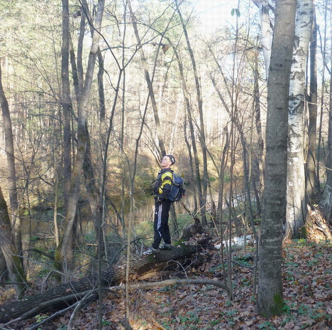 Периодически попадались обозначенные указателями родники и, что радует, практически не попадалось мусора. Видимо из за удаленности как от Мичуринска, так и от Липецка. После деревни, проехав еще с километр выехали на заброшенную усадьбу в лесу на высоком берегу Иловая. Очень красивое место. Дальше лорога шла на небольшом удалении от реки. Благодаря осени и уже сбросившим листья деревьям река то и дело мелькала между ними. Красота проняла даже Олега Андреевича. Свернув к берегу выехали к роднику, поразившему своей мощью. Вода из под земли хлестала как из прорванного водопровода и тут же впадала в Иловай. Вскоре выехали к третьему на нашем пути мосту. Дальше уже по правому берегу выехали на опушку леса к деревне. Иловай остался левее и где-то там впал в Воронеж. К мотовеломосту через Воронеж короткой дорогой по наводке выехали и мы . Другой берег Воронежа был безлесный . За близкой деревней пролегала трасса Мичуринск - Доброе, с которой мы свернули, проехав 5 км, к Матырскому водохранилищу. До него было 40 км. аствальдта через сплошные деревни. Мы, таким образом, двигались вдоль левого берега Воронежа. На плотине Матырского водохранилища остановились что-нибудь съесть. К этому моменту проехали 100 км. А солнце уже клонилось к закату. Встретили липчан. Доехали с ними до Казинки, что на трассе Грязи - Липецк и, повинуясь интуиции отправились искать дорогу на Усмань. Интуиция дала сбой, в результате чего заложили крюк километров в 7. Зато прокатились по еще не законченному куску окружной дороги. Выехали по нему к Фащевке на усманскую дорогу , знакомую по Липецким Веломаям. Настало время включить фары. По усманской трассе проехали 20 км и свернули на аствальдт до Куликово. Тут уж совсем темно стало. Куликово хоть и в одну улицу, но очень длинное. После него начинается Боровое. Свернули с аствальдта и вдоль леса по грунтам устремились в сторону Савицкого, держа слева кукурузное поле. Через некоторое время показались огоньки, а потом и деревенские хаты. Выехали на аствальдт, который должен был вести к мосту через Воронеж. Я все искал в темноте справа от дороги церковь, как ориентир, но церкви не нашел. А вскоре и аствальдт завернул совсем не туда. Решили, что выехали в Савицкое с другой его стороны. Слезли с аствальдта и по песчаной улице двинули в темноте в кажущуюся правильной сторону. Тут деревня взяла и кончилась. Никаких следов реки Воронеж. на которой стоит Савицкое в темноте видно не было. Наоборот, в той Стороне, где должна была быть река местность повышалась и рос сосняк. Остановились как вкопанные. Решили возвращаться в деревню по своим следам. Олег Андреевич изводил потерпевших натуралистическими картинами поедания роллов Радлером, Жени и Любой, которое якобы имеет место как раз в этот момент в Воронеже. Не выдержали, позвонили Жени. Оказалось, что он сидит дома. Напряжение спало. Тут подвернулась машина из которой нам пояснили, что никакое это не Савицкое, а все еще Боровое. А до Савицкого еще километров семь. И вправду, проехав пяток километров грунтами, вылезли на знакомый по путешемтвиям аствальдт, ведущий к мосту через Воронеж. Забрались в гору, доехали до Синдякино, а оттуда решили ехать к самолету на М4 пить чай, что успешно и проделали. Оставшиеся до Воронежа 50 км проехали без приключений. На Иловай хочется еще. Может быть весной на байда