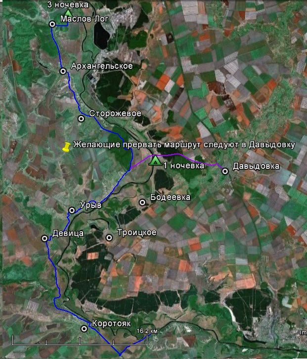 30 апреля движемся вдоль правого берега Дона через Коротояк, Девица, Урыв-Покровка, Титчиха к Маслов Лог и там становимся на третью ночевку.
