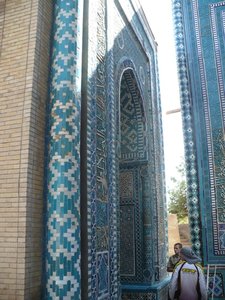 Ислам туда привезли арабы. В Самарканде, в самой древней мечети Средней Азии нам поведали, что какой-то их святой является только мужчинам, жмет им руки и отличить его можно по отсутствию фаланги. Главное он покровительствует путешественникам, и: "Вам обязательно встретится". После, я обращал внимание на руки, а вдруг. Там же, в Самарканде, в Регистан ведет современная пешеходная улица. В ряду красивых магазинов есть неприметные ворота, в которые постоянно входят и выходят взрослые и дети, через них, вы, как на машине времени, попадаете в лабиринты старого города. Спросив разрешения и разувшись, входим в убранную коврами действующую мечеть, из украшений только несколько часов, отсчитывающих время намаза.