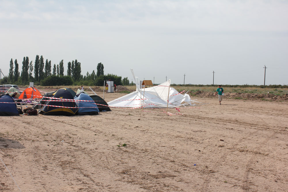 последствия очередного урагана - это 4 шатра связанные в один, их подняла неведомая сила в воздух перевернула и сломала...
