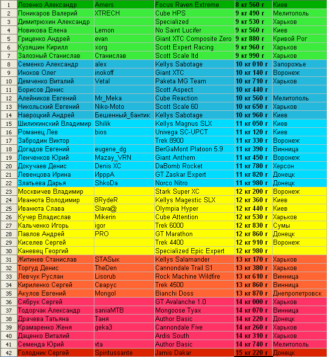 а это результаты взвешивания велов после гонки