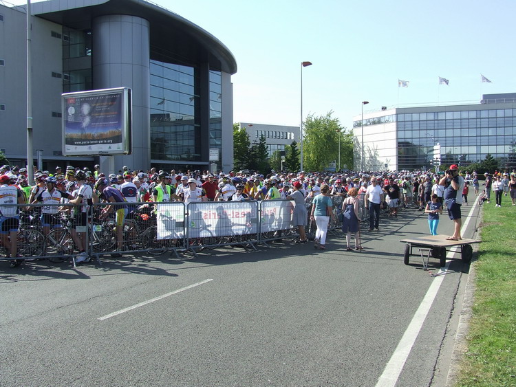 Вечером двинули на старт знакомой дорогой через версальский парк. Жара была за 30. Вокруг стадиона клокотало море участников и провожающих. От стартовых ворот неслись непонятные французские вопли затейников.