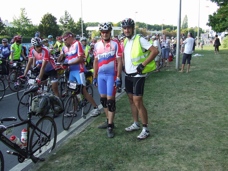 Только теперь наступил велосипедный этап путешествия. Сначала надо былоехать искать СенКвентин и стадион, с которого вечером предстояло стартовать. Поскольку профи-командная раскраска на ПБП запрещена, вместо любимых маек пришлось вырядиться в наскоро приобретенные еще в Воронеже, в Декатлоне гнусные подобия джерси от БиТвин. На свою майку я пришил кусок буксирной ленты от машины, окрашенной в цвет российского триколора. Чтобы обозначить государственную принадлежность. Этого показалось мало. Поэтому перед выездом из гостиницы, разложив майки на белом пластиковом столе, я несмываемым маркером вывел на них "RUSSIA", "Voronezh" и "Velo36". К моему неописуемому ужасу, оказалось, что надписи, кроме майки остались и на поверхности гостиничного стола. Как пел классик:"В общественном парижском туалете есть надписи на русском языке..." А тут на надписи и страна и город и сайт. Ясно кому предъявлять счет за порчу гостиничного имущества. Попытки смыть