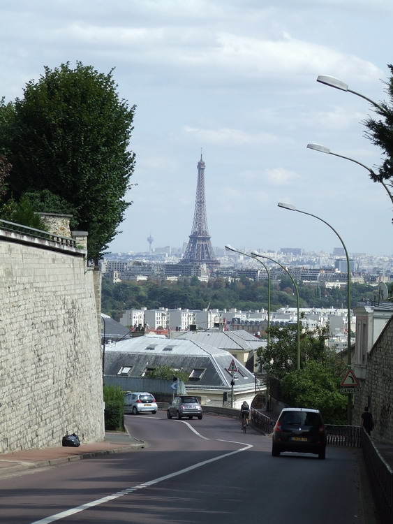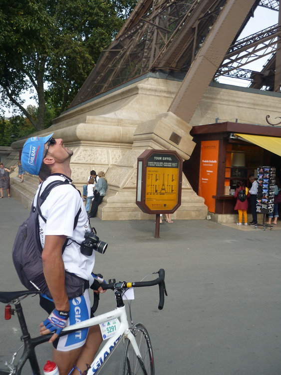 из Радлеровской велоаптечки успеха не имели. Эта надпись ела мне мозг до самого возвращения в гостиницу и потом три дня, пока я лежал в номере и ждал Радлера. Под конец визита удалось ее оттереть за полчаса собственной зубной щеткой и гостиничным жидким мылом. Вобщем, погожим парижским утров двинулись на регистрацию в СенКвентин. Это километрах в 7-ми от гостиницы. Сначала дали крюк по Версалю и Парли. Потом выехали на широкую улицу с велодорожкой. В попутном с нами направлении двигались другие велосипедисты. Это придавало уверенности в том, что едем правильно. Слева долго тянулся длинный каменный забор с решетками. Как потом оказалось, это был тот самый версальский парк