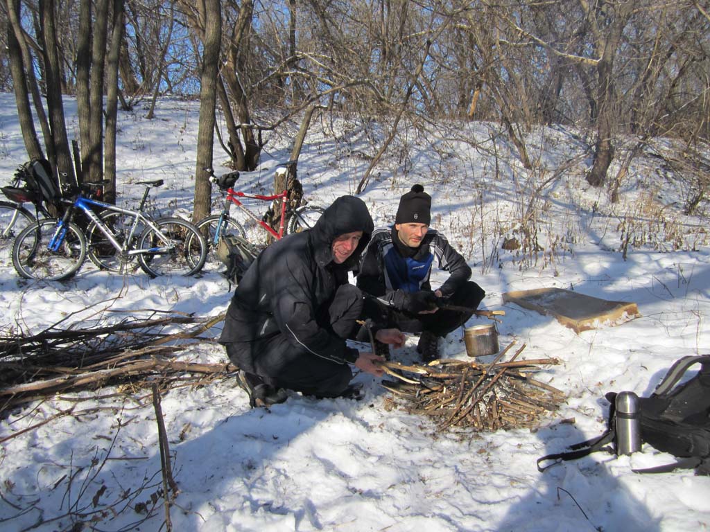 Жгем костер, чтобы победить гипотермию.