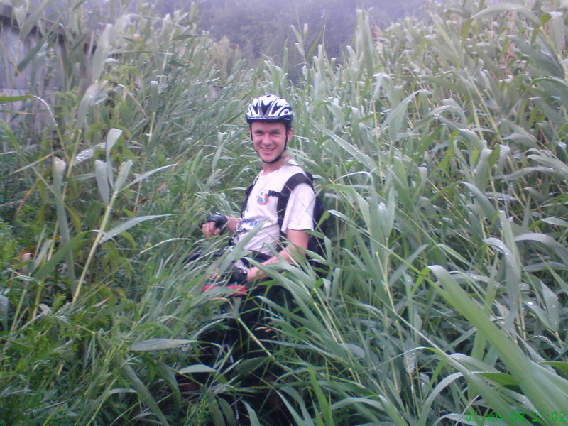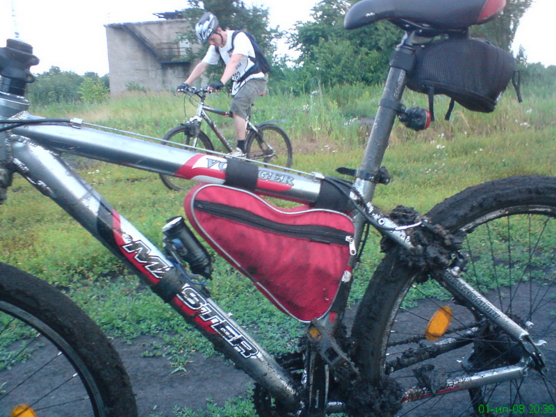 Дождик уже перестал, поэтому моё предложение все-таки поехать по намеченному маршруту вызвало энтузиазм и желание немедленно отправляться. Однако, дополнительное предложение ехать по асфальту (надоело вытирать лицо после каждой лужи и отряхивать со спины чернозем) разбилось об неопровержимый аргумент - дескать, "ты уже и так как чушка грязный, че выделываешься, там и речка есть - едем по говнам!"