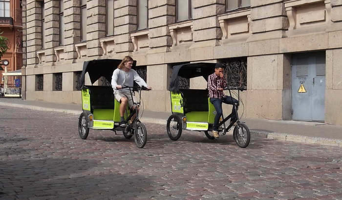 благо город плоский, а не холмистый как Вильнюс или Таллинн. Мой Флэш отлично глотал все неровности брусчатки, пока, перед самым возвращением в порт, не спустило переднее колесо. При инспекции камеры обнаружился вырванный из резины штуцер. Не ремонтируется. Я, впрочем, попытался, но через сто метров колесо опять спустило. А в порт надо было торопиться - скоро уходил мой корабль.