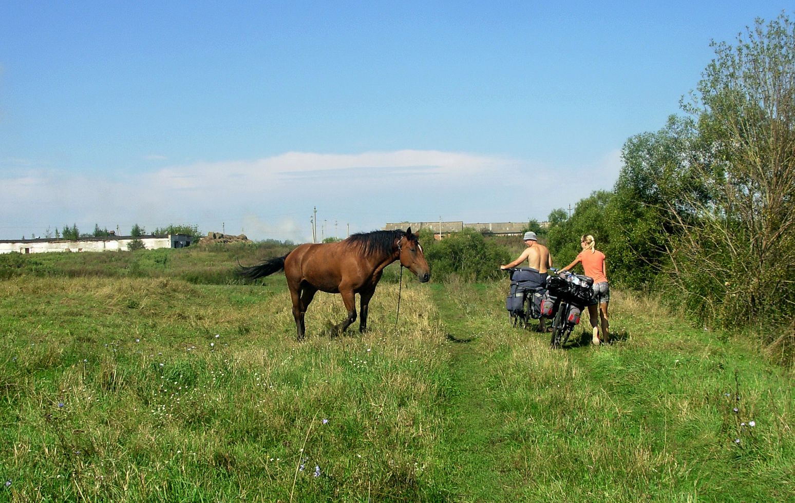 Только мы успели все разложить в палатках, как начался дождь. Да не просто дождь, а ливень, с ураганным ветром и разрядами молний над головой. Ветер свалил поставленные нами велосипеды, Маша как могла поддерживала свою сторону палатки, на которую пришелся удар стихии. Внешний тент палатки оказался прижат к внутреннему и так как 10 лет службы моей палатки сказались на качестве защиты от воды, в палатке начала расти лужа. Под раскаты грома, вспышки молний и проливной дождь пришлось выбираться натягивать растяжку. Но постепенно ветер стих, дождь ослаб, мы поняли что выжили и приступили к отдыху.