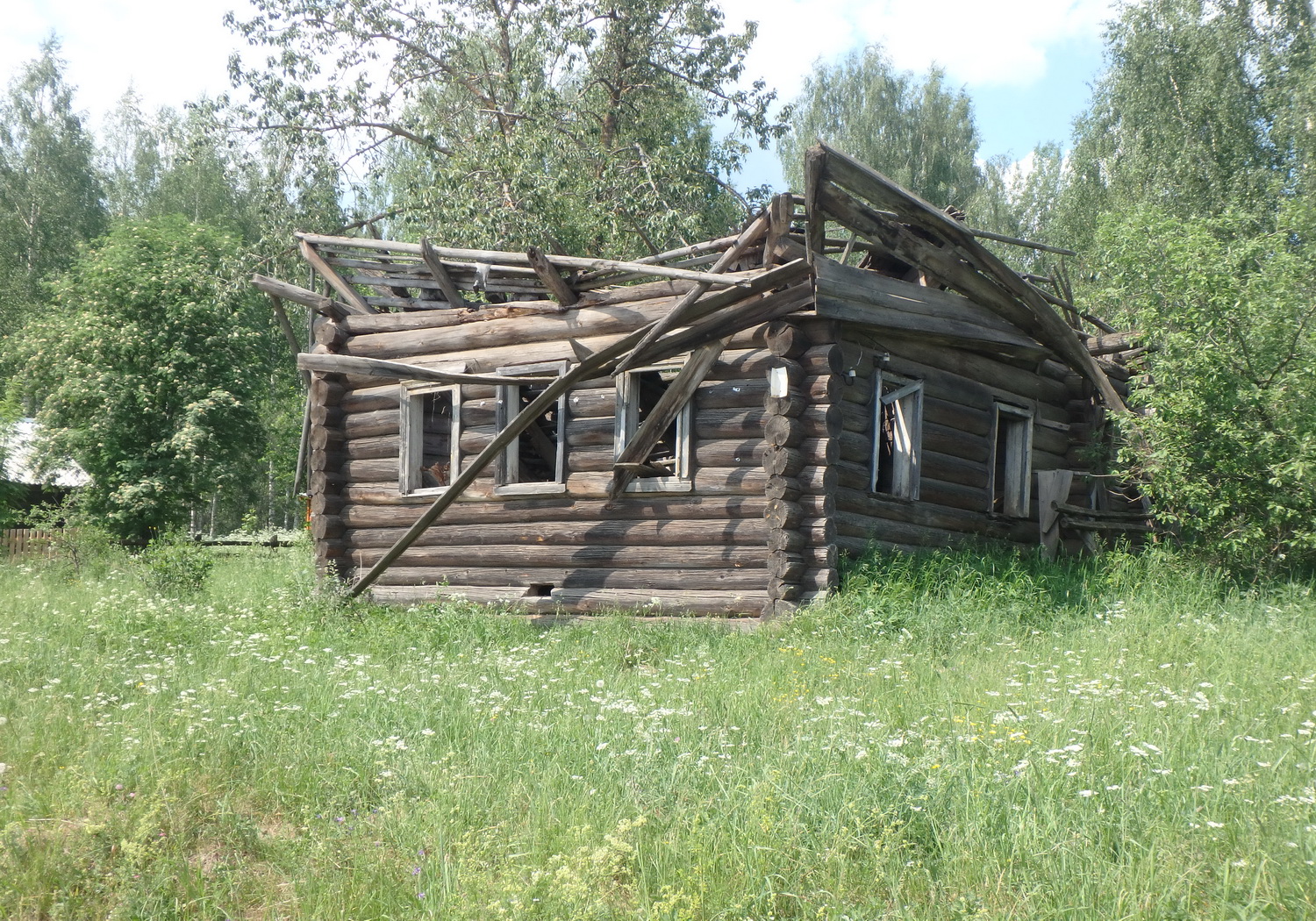 На следующий день продолжили движение на северо – запад вдоль Рыбны. Аствальдтовая дорога ушла в сторону и мы съехали на грунт. Ехали через лес. На болотистых или просто рыхлых местах, по местному обычаю, валялись гати из горбылей. Ярославская область кончилась, началась тверская. Архитектура изменилась, но заброшки меньше не стало. После деревни Дудиково долго тащились по пыльной песчаной дороге.
