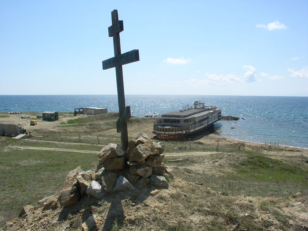 Дальше на берегу был корабль который явно уже отплавал своё и был окружен оградой.