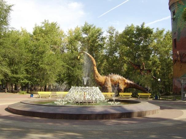 Неторопясь посмотрели паровоз, памятник афганцам и направились в детский парк с динозаврами, который встретил нас блаженной тишиной, прохладой весело брызжущего в разные стороны фонтанчика и великолепными фигурами динозавров. Вдоволь насладившись красотами парка, нашли Сбербанк, ну а к магазину нас после этого прямо таки притянуло "Магнит"-ом. В парке неподалеку перекусили и отправились ожидать электричку Лиски-Воронеж.