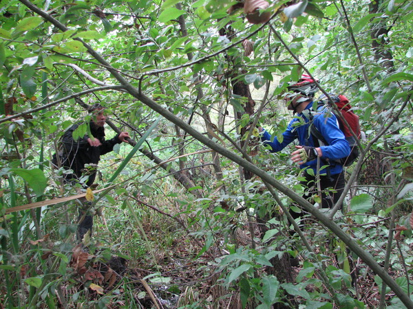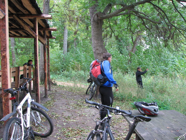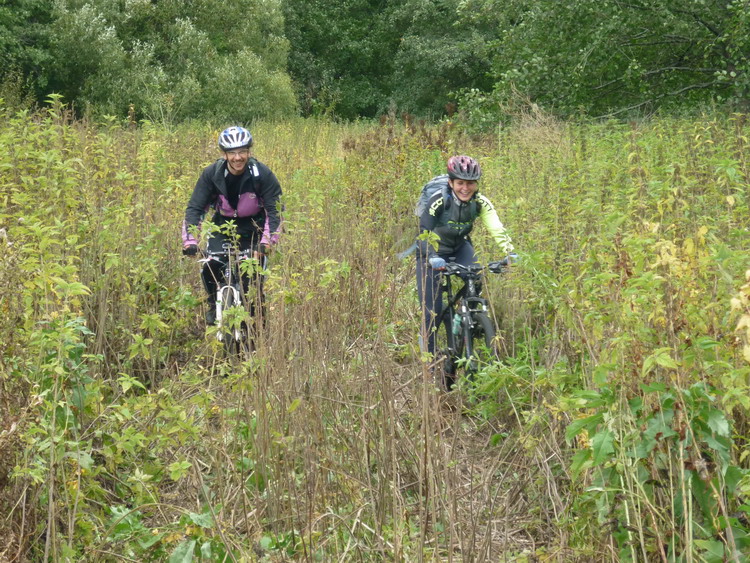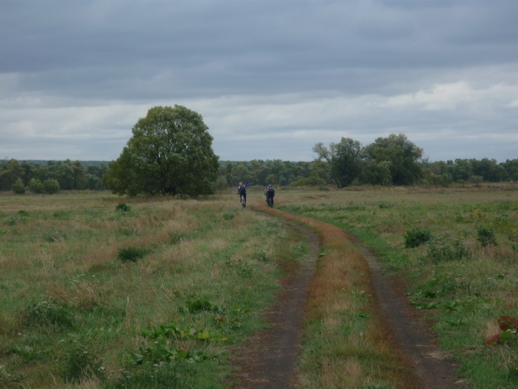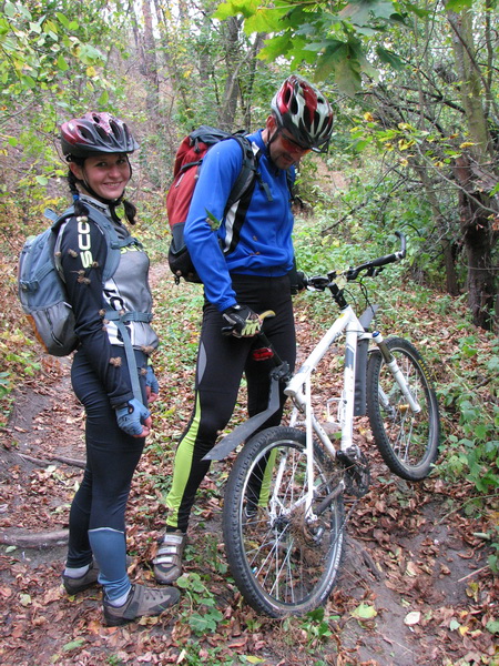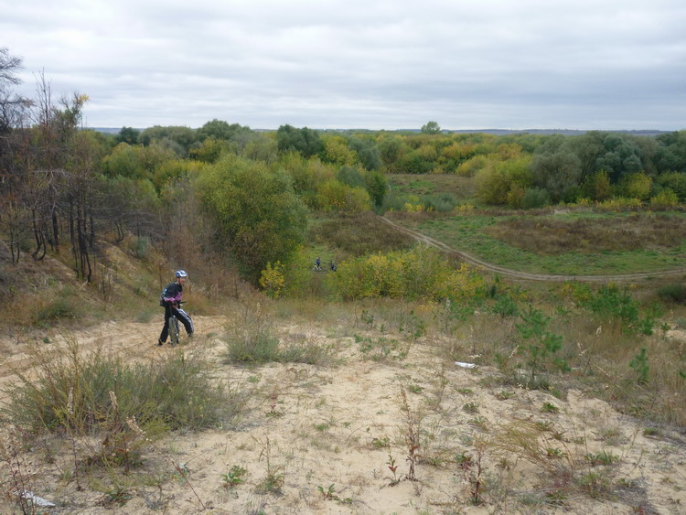 Что -то неожиданно много накрутили. 150 км. В первой половине, поезка приняла ярко выраженный проходимческо - выживальческий характер. А все из за умело выбранного маршрута. Всем участникам удалось в той или иной степени искупаться еще до купели в болотах между оз.Икосным и оз.Погоново. А началось все с песчаного спуска у дач в пойму Дона. Так или иначе, все оказались внизу и залезли в чащу с целью наслаждения осенней красотой, а также с целью несколько утоптать тропу до оз. Жирово, зарастающую в промежутках между нашими визитами. Вообще, надо туда организовывать новичковые покатушки. Пару раз туда - обратно продерется человек 15 , и дорога готова. Штурмовали достопамятную крапиву в рост человека, которая вяло кусалась, готовясь к зимней спячке. Долго избавлялись от следов единения с природой. Оказались на оз. Жирово, а оттуда для разнообразия поехали на оз. Икосное. В силу глупой привычки, я не люблю возвращаться по тому пути, которым попал на место. Полезли искать другой выезд с Икосного, лезли по заросшей колее вездехода, пока она не нырнула в болото. С помощью палочек и прутиков, полезли в болото и мы. Некоторые совсем неудачно. Я провалился одной ногой, а Кипер обеими и выше колен. На той стороне болота виднелись заросшие крапивой колеи с развилкой. Поехали сначала в одну сторону, и я понял, что это и есть та исчезнувшая дорога, по которой можно было добраться с одного берега Погоново на другой междй озерами Икосным и Погоново. Это ее мы безуспешно искали с Радлером и Коналексом пару лет назад. Радость обретения оказалась преждевременной, Дорога упиралась в ручей между озерами, а от моста, который там когда то был не осталось и следа. Развернулись и поехали в другую сторону и вскоре оказались в гремяченских лугах, где с подачи Радлера взяли бешеный темп. Пролетели турбазу и быстро оказались у Неоворонежского моста. Поехали в Неоворонеж, а потом, мимо АЭС к Аношкино, где напротив скал в Сторожевом, на другом берегу Дона в лугах и сидит купель. Попробовал было я водичку на вкус - ОЙ! Воды Ганга какие то по запаху. Наверно жутко полезно, но выпить надо себя заставить. Налюбовались на купель, развернулись домой, и тут начался выживальческо - страдальческий этап поездки. Потому что сегодняшний ветрило задул нам навстречу. Мне, после вчерашних скоков по горам на Олимпике, что-то совсем не крутилось. Раздвигать воздух взялся Радлер. Доехали обратно до Неоворонежа, повернули на Колодезную, а выехав к виадуку новой трассы, поехали грунтами вдоль железки. По ходу этапа. Радлер умудрился погоняться с пассажирским поездом и оставить о себе сильное впечатление у обескураженных пассажиров. Что то я накатался сегодня. Какие еще после этого Шишки в Усмани. Героям - проходимцам - Салют! До новых истошных встреч.