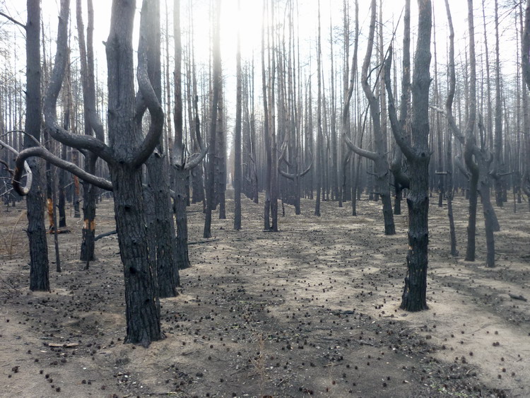 Съездил, посмотрел. В воскресенье будет нелегко. Вода то вся упала. Максимум, что получится - дойти на байдах до оз.Жирово, но придется очень постараться. Свидетельство - фотодокументы из сегодняшней поездки. Грустная получилась она. Во - первых ехал один. Свернув после плотины в леса долго ехал через прошлогоднюю гарь. Жутковатый пейзаж. Потихоньку гарь начинают вырубать. Мимо военных доехал до Жирово и обнаружил озеро практически в летних берегах. Со стороны Сонькиного озера, правда, через дорогу тек ручей, но совершенно непригодный для байдарочных отиров. Решил я идти вдоль Жирово, а потом ручья к Жировскому затону. По тропе, которую я настойчиво призывал прорубать прошлым летом. От тропы мало что осталось. Нанесло плавника. То и дело остатки колеи ныряли в лужи или перерезались ручьями. Думаю, тех, кто представляет о каком месте идет речь, картинки позабавят.