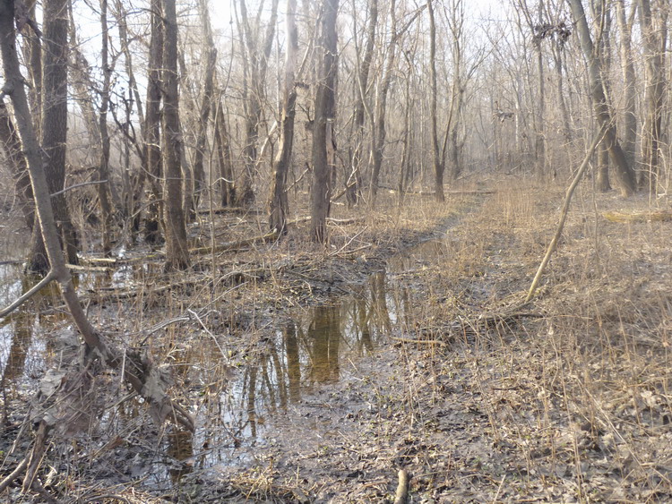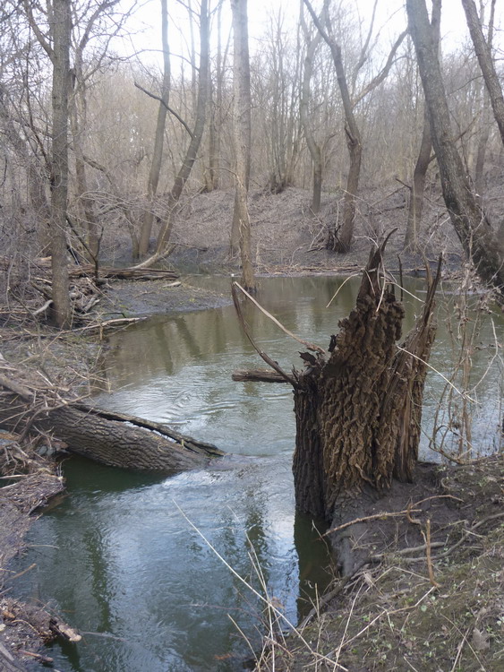 Дорога, отклонившись от Жирово и поныряв в лужи, вышла к протоке, ведущей из озера Жирово в Жировский затон. По ней предстоит лезть на байдах. Смотрим. Цепная пила - необходима. Наконец дорога пошла вдоль Жировского затона и у дач окончательно нырнула под воду. Полез в обход, вдоль аппендикса затона. Обнаружил там следы зубов страшного чудовища - жировского бревноеда. Воронеж залез в свои берега, но в пойме - грязюка. Поднялся к дачам и поехал к плотине дорогой, которой 23-го февраля ехали на шашлыкинг. В лесу, прямио под боком у будки с пьяной охранницей водокачки, наткнулся на лесной пожар. У телефона села батарейка, поэтому позвонить не смог. На плотине постучался к охране и попросил вызвать каких - нибудь пожарных. Настроение испортилось окончательно. На счастье, пришлось забираться на правый берег в гору и грусть отступила перед физическими страданиями. На подъеме встретил байкера, на повороте к плотине встретил Милениум Фалькона. Въехав в Воронеж, обнаружил, что город так и не заметил моего отсутствия.