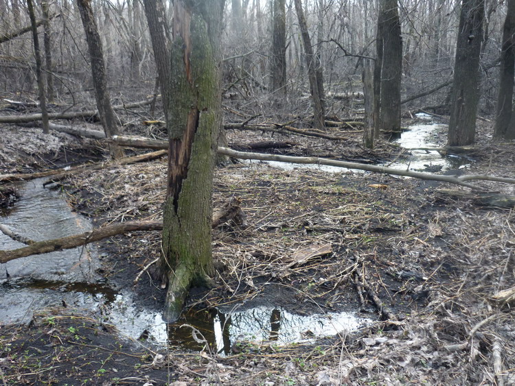 Дорога, отклонившись от Жирово и поныряв в лужи, вышла к протоке, ведущей из озера Жирово в Жировский затон. По ней предстоит лезть на байдах. Смотрим. Цепная пила - необходима. Наконец дорога пошла вдоль Жировского затона и у дач окончательно нырнула под воду. Полез в обход, вдоль аппендикса затона. Обнаружил там следы зубов страшного чудовища - жировского бревноеда. Воронеж залез в свои берега, но в пойме - грязюка. Поднялся к дачам и поехал к плотине дорогой, которой 23-го февраля ехали на шашлыкинг. В лесу, прямио под боком у будки с пьяной охранницей водокачки, наткнулся на лесной пожар. У телефона села батарейка, поэтому позвонить не смог. На плотине постучался к охране и попросил вызвать каких - нибудь пожарных. Настроение испортилось окончательно. На счастье, пришлось забираться на правый берег в гору и грусть отступила перед физическими страданиями. На подъеме встретил байкера, на повороте к плотине встретил Милениум Фалькона. Въехав в Воронеж, обнаружил, что город так и не заметил моего отсутствия.
