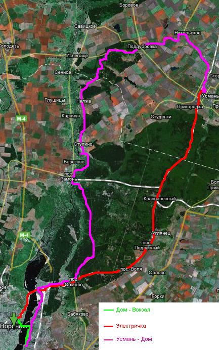 Я вообще в первый раз выехал на длинную дистанцию на велике. Побоявшись нехватки опыта/сил - не поехал с утра с Dwoex-ом, а покатил на электричке до Усмани.