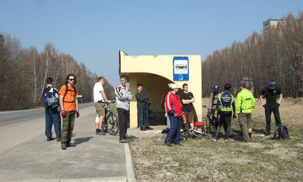 Оказалось, что нас, десять человек, собралось под мостом в Отрожке, и давай крутить педали. Некоторые были в особо сомнабулическом состоянии после ночной покатушки. Еще из - под моста позвонил я нашему единомышленнику Андрею, чтобы встречал нас в Бору.