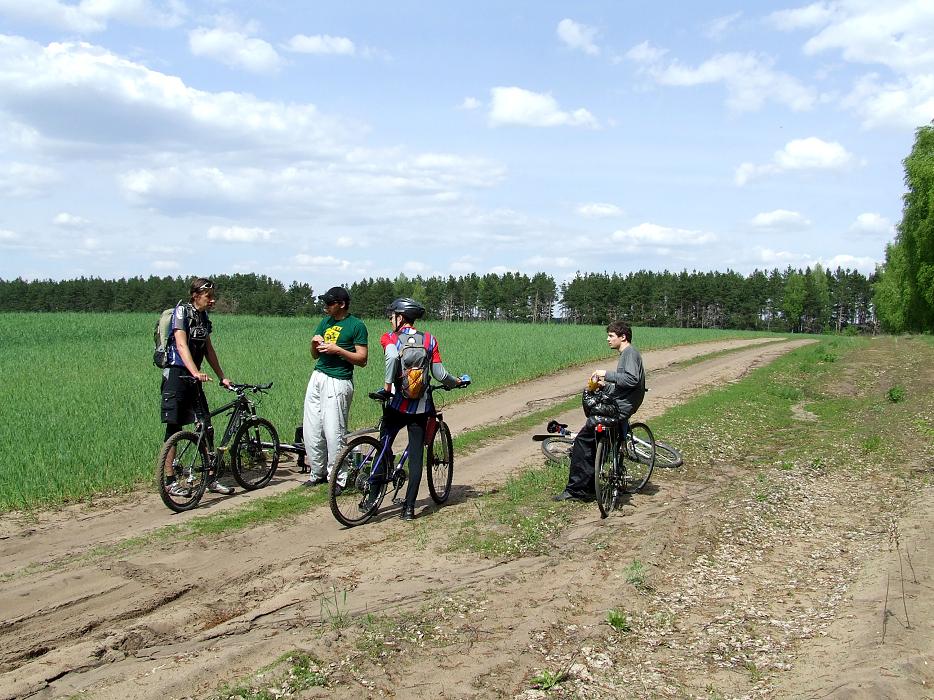 Так мы и не проехали дорогой которая вдоль Дона идет до Кривоборья. Проехали какой то своей галсами по полям и выехали в Горожанку, а уж оттуда путь известный. На околице Кривоборья встретили группу Килобайта и вместе отправились по пожалуй самому интересному участку - узкой тропке над обрывом к Дону. Местами тропка осыпалась в Дон и приходилось продираться через подлесок. Здорово. После обрыва мы той же группой в пять человек: ВладимирИ, Неджмдин, Папирус,Радлер и я, пересекли М4 и полями вылезли в район Пекшево - Прудская на асфальт до Рамони. Пока ехали полями, обнаружили дохлую лису в дупле ивы. Это не помешало с хорошей скоростью при ветре в спину быстро проскочить Борки, Лопатки, и объехать Рамонь. Дальше - известное дело, через Айдарово и Староживотинное в Чертовицк, по забору аэропорта на мостик через овраг и.т.д. Радлер все это время периодически рвал нипадецки. Мне оставалось висеть у него на колесе время от времени. Все - таки гонка в субботу еще отдается там и сям в теле у меня. Как и было заявлено, пробег составил около 130 км. По приезде обнаружил на себе клеща, не успевшего впиться. Ахтунг! До сморчков маленько не доехали. Вылезли чуть ближе к Рамони.