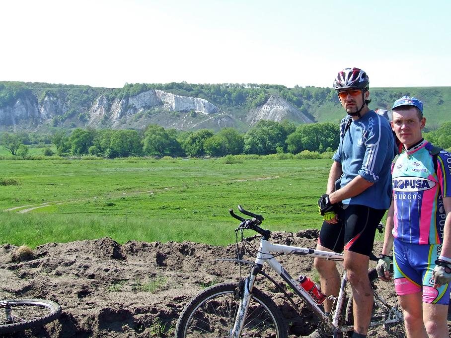 Вчера, 3 мая состоялся однодневный поход по маршруту Воронеж - Дивногорье - Воронеж. Ночью перед выездом звуки дождя ввергли меня в уныние. К счастью дождь был несильный и когда мы впятером встретились в 6.30 у цирка все уже подсыхало. Расчитывали проехать ок.300 км. В реальности маршрут оказался короче. Статус похода повышался участием в нем Олега Инокова, велотренера, который поехал чтобы по его словам "восстановиться после тренировок". Такое вот восстановление у профессионалов. После плотины свернули вдоль берега Воронежа , а потом через гремяченские луга двинули в район оз.Погоново. Грунтовки были хорошо укатаны машинами рыбаков и ехать было комфортно. Неприятности начались дальше. Похоже, что понтон в Гремячьем до сих пор не восстановили. Следов машин на грунтовках не было совсем. Поэтому мокрый от росы и ночного дождя чернозем начал охотно облеплять колеса. Nedjmdin-у пришлось снимать переднее крыло. У Radler-а сломался передний переклюк, я поскользнулся на мокром бревне и убрался, не успев выстегнуться. Апофеоз наступил перед турбазой ГОО. Там низина и вода от разлива Дона ушла недавно. Поэтому на протяжении метров 200 грязь была непролазная. Навстречу нам ее пыталась перелезьть "Нива". В конце- концов она самозакопалась и заглохла. У спуска к Дону в районе турбазы пришлось купать в реке велы, чтобы отмыть грязь. дальше дорога шла по краю сосняка, а потом опять уходила в луга. Туда лезть опять не хотелось. Поехали по краю леса вдоль озера. Началась другая напасть - пески. Немного помогало то, что они были чуть сыроватые от ночного дождя. Добрались до Каменно - Верховки в которой строят асфальтовую дорогу. Выехали к мосту через Дон и начали раздумывать как ехать дальше. Ехать через мост и по правому берегу Дона в Сторожевое не очень хотелось. Ехать через Нововоронеж и АЭС тоже не очень хотелось, памятуя прошлогодние страдания SDA, который вяз там в песках. Все - таки надеясь на удачу, а не на карту, поехали через Нововоронеж. Как оказалось, правильно сделали. До АЭС шел асфальт, потом он заворачивал на стройплощадку (похоже новой очереди АЭС), потом он превратился в бетонку и наконец в хорошую, укатанную до состояния асфальта грунтовку, которая шла вдоль Дона. По ней часто проезжали машины и было понятно, что дорога ведет к какому - то жилью. Этим жильем оказалось Аношкино, на другом берегу Дона виднелись меловые обрывы у Сторожевого. Аношкино перешло в Старую Хворостань с асфальтом до Давыдовки. Дорога до Давыдовки все время шла в подъем, вдобавок был сильный встречный ветер. Пришлось покрутить. Перед Давыдовкой подъем сменился спуском, а повернув на Коротояк, мы получили ветер в спину и 28 км. пустого асфальта. Посередине этого участка на затяжном спуске скорость доходила до 55 км.ч. если не крутить. Удовольствие портило сознание того, что придется по этой дороге ехать обратно при встречном ветре и в гору. В Коротояке по понтонному мосту переехали через Дон и по дамбе, идущей по мокрому лугу двинули в Дивногорье, которое было уже рядом. Переехали Тихую Сосну по полудохлому мосту, проехали через деревню и вот мы на месте. Поскольку от графика отстали, в Дивногорье были всего около получаса. Двое решили ехать электричками, в обратный путь своим ходом мы отправились втроем, предварительно выпросив у водителя экскурсионного ростовского автобуса масла, ч