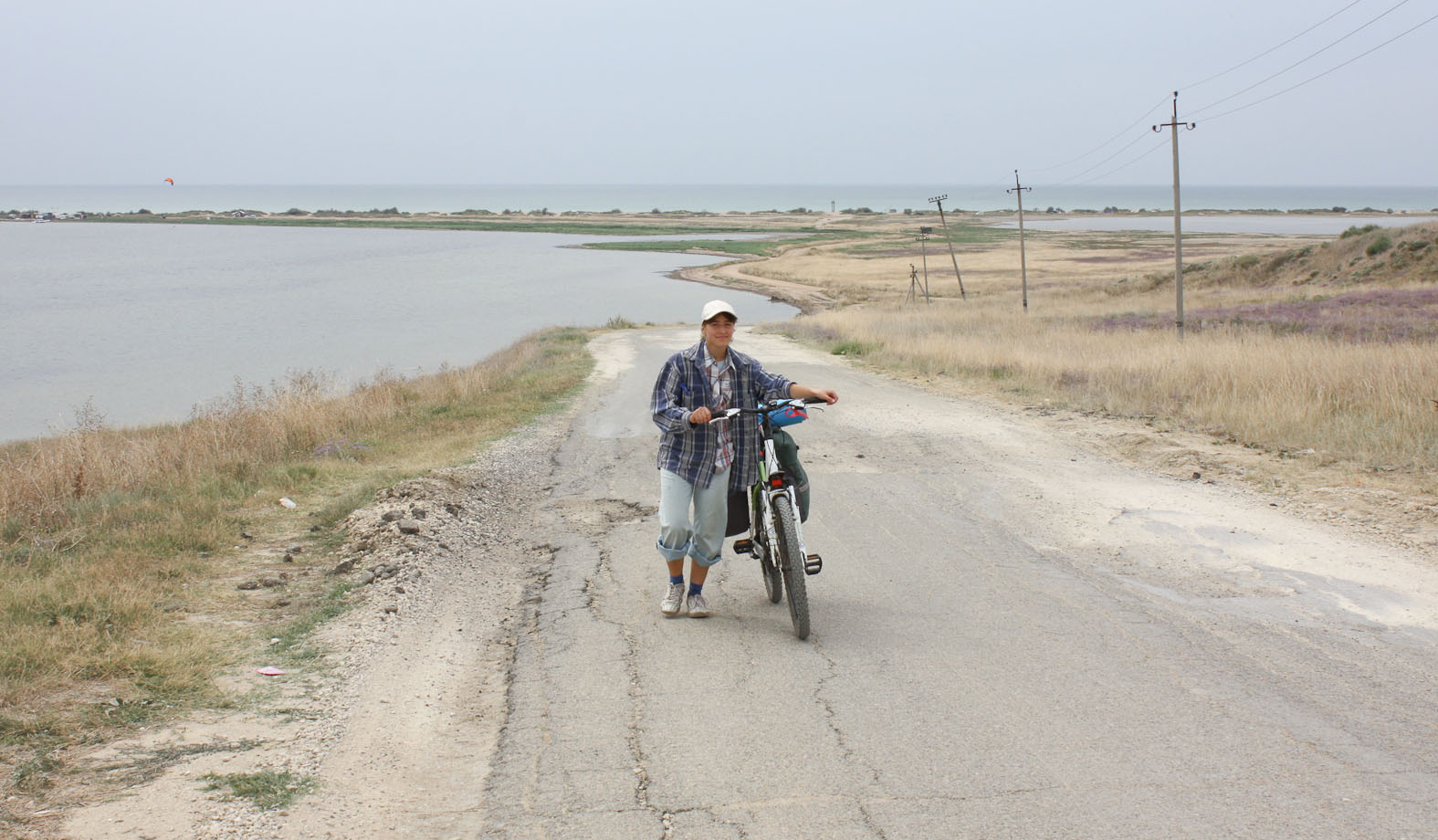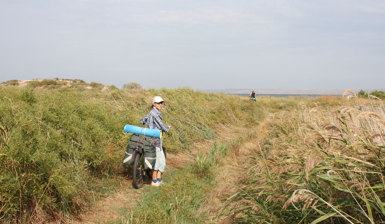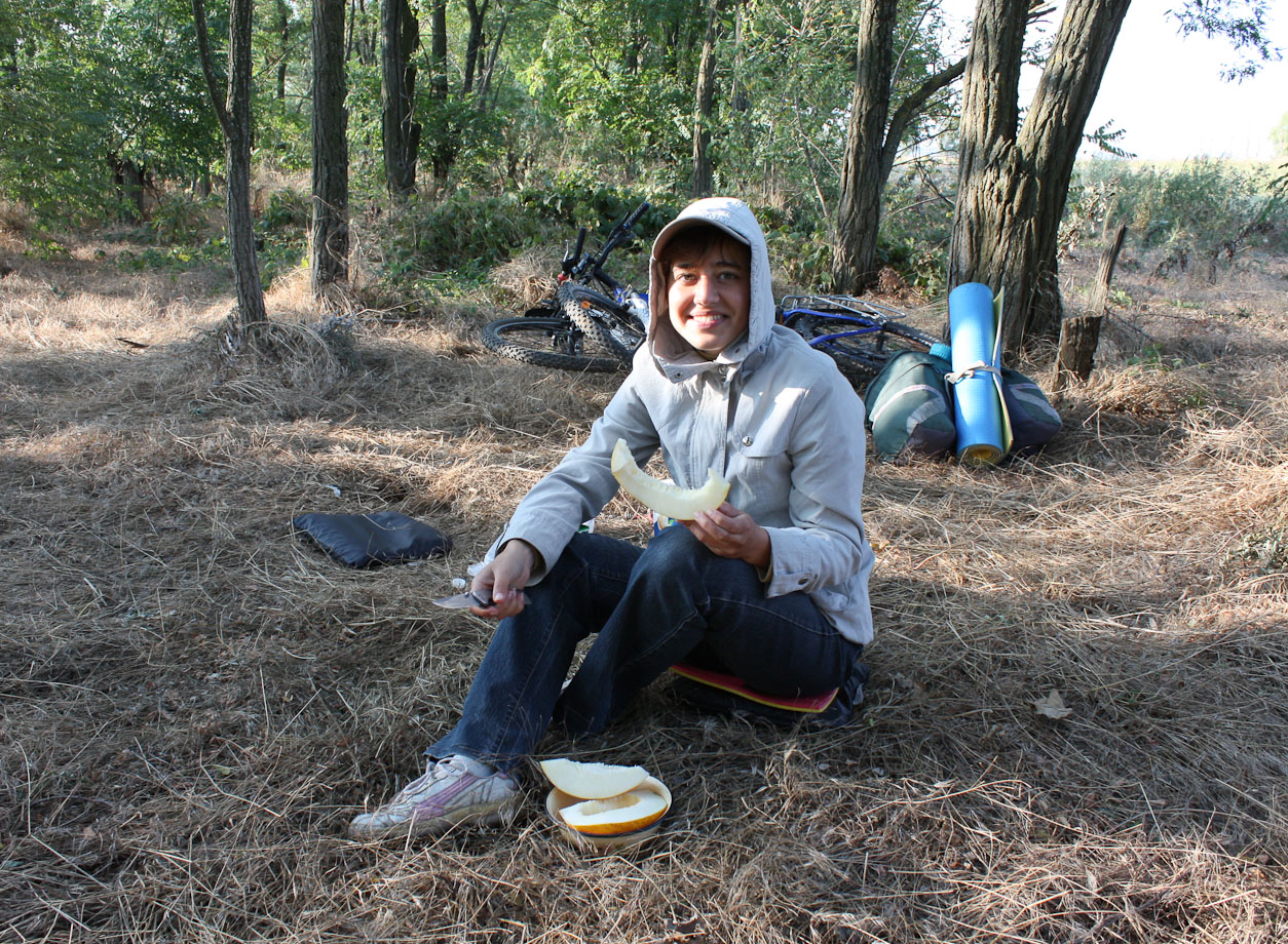 День №1 АНАПА-БУГАЗСКАЯ КОСА. Выгрузились в Анапе, собрались, билеты домой было решено не покупать, стоили 1700р, но при этом еще были из Семферополя в Воронеж. Плавно покатили по асфальту в сторону населенного пункта Виноградный, там повернули налево в сторону Бугазской косы и станицы Благовещенская. Проезжали арбузные поля, не удержались прикупили красной ягоды по 7р. за кг. Впервые увидели море, а точнее лиманы рядом с ним, плавно докатили до Кайт станции.