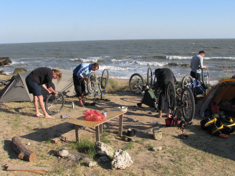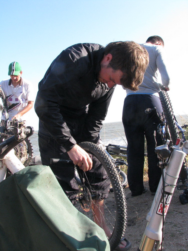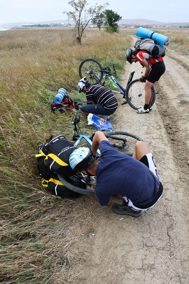 Проколы отнимали уйму времени, после чего было решено делать привалы при не вынужденных остановках связанных с бартированием колес. Утро с третьего дня похода начиналось с ставшего привычным звуком работы велонасоса, качали все, а еще он совпадал со звуком пешеходного светофора в Керчи у автовокзала.