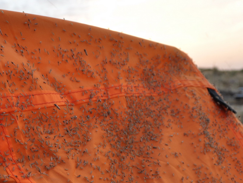 День №2 БУГАЗСКАЯ КОСА – ТАМАНЬ. Проснувшись удивились увиденному, проворство местных паучков поражало, велосипеды были обильно окутаны в паутину, а палатки еще с вечера усыпаны мошками.